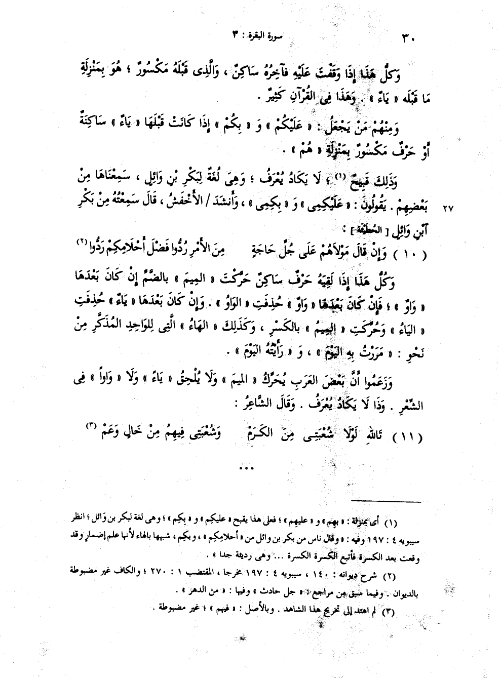 وكل هذا اذا وقفت عليه فآخره ساكن والذي قبله مكسور هو بمنزلة ما قبله ياء. وهذا في القرآن كثير. ومنهم من يجعل ["كُمْ] في] "عليكم" و "بكم" اذا كانت قبلها ياء ساكنة او حرف مكسور بمنزلة "هُمْ" وذلك قبيح لا يكاد يعرف، وهي لغة لبكر بن وائل سمعناها من بعضهم يقولون "عليكِمي" و "بِكِمي" وأنشد [13ب] الاخفش قال سمعته من بكر بن وائل: [من الطويل وهو الشاهد العاشر] :
