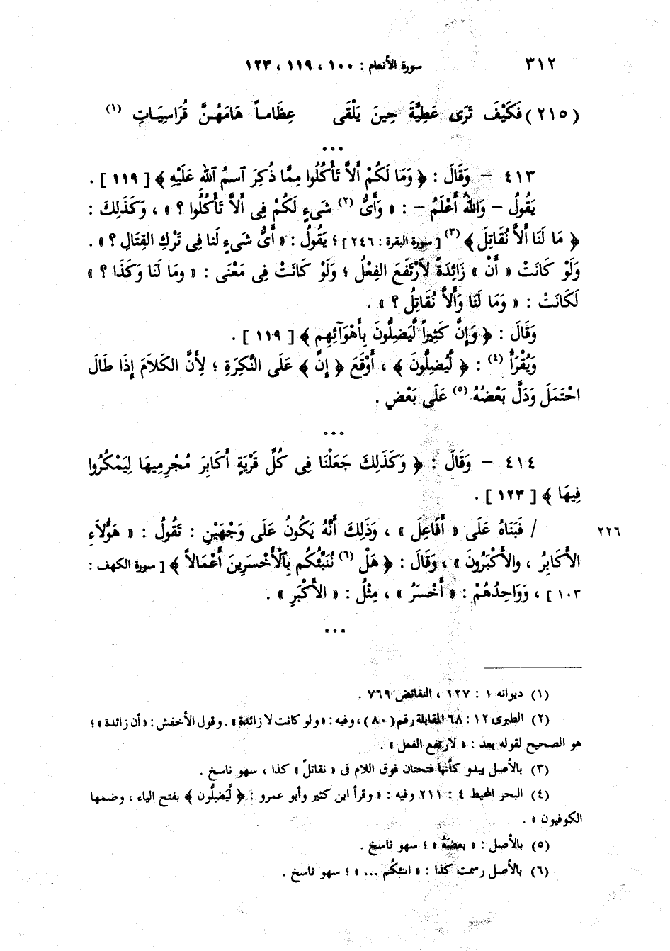 وقال {وَكَذلك جَعَلْنَا فِي كُلِّ قَرْيَةٍ أَكَابِرَ مُجَرِمِيهَا لِيَمْكُرُواْ فِيهَا} [113 ء] فبناه على "أَفاعِل"، وذلك انه يكون على وجهين يقول "هؤلاء الأكابر" و"الأكبرون" وقال {نُنَبِّئُكُم بِالأَخْسَرِينَ أَعْمَالاً} وواحدهم "أَخْسَرُ" مثل "الأَكْبَر".
