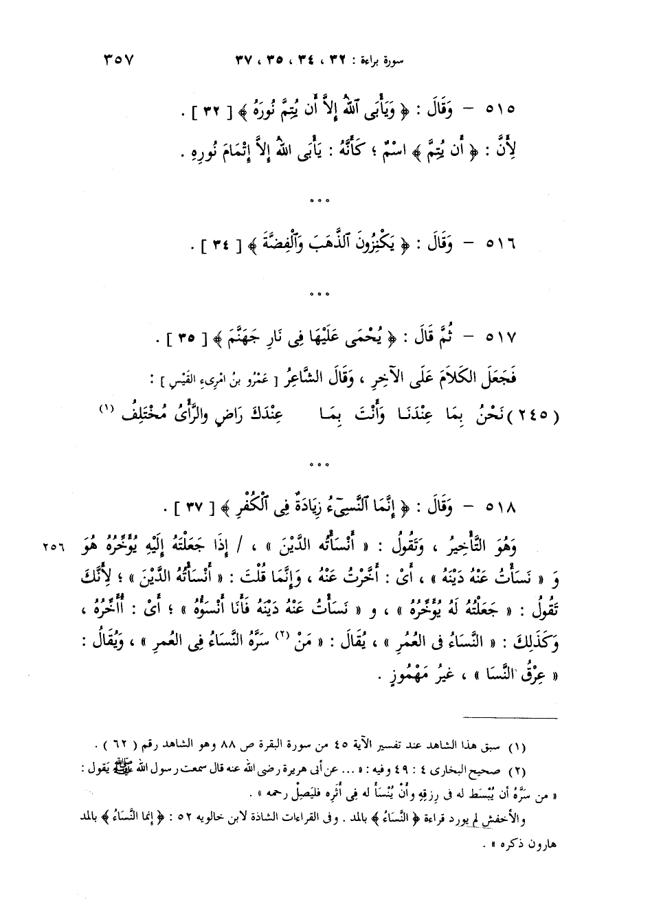 {إِنَّمَا النَّسِيءُ زِيَادَةٌ فِي الْكُفْرِ يُضَلُّ بِهِ الَّذِينَ كَفَرُواْ يُحِلُّونَهُ عَاماً وَيُحَرِّمُونَهُ عَاماً لِّيُوَاطِئُواْ عِدَّةَ مَا حَرَّمَ الله فَيُحِلُّواْ مَا حَرَّمَ الله زُيِّنَ لَهُمْ سُواءُ أَعْمَالِهِمْ وَاللَّهُ لاَ يَهْدِي الْقَوْمَ الْكَافِرِينَ}