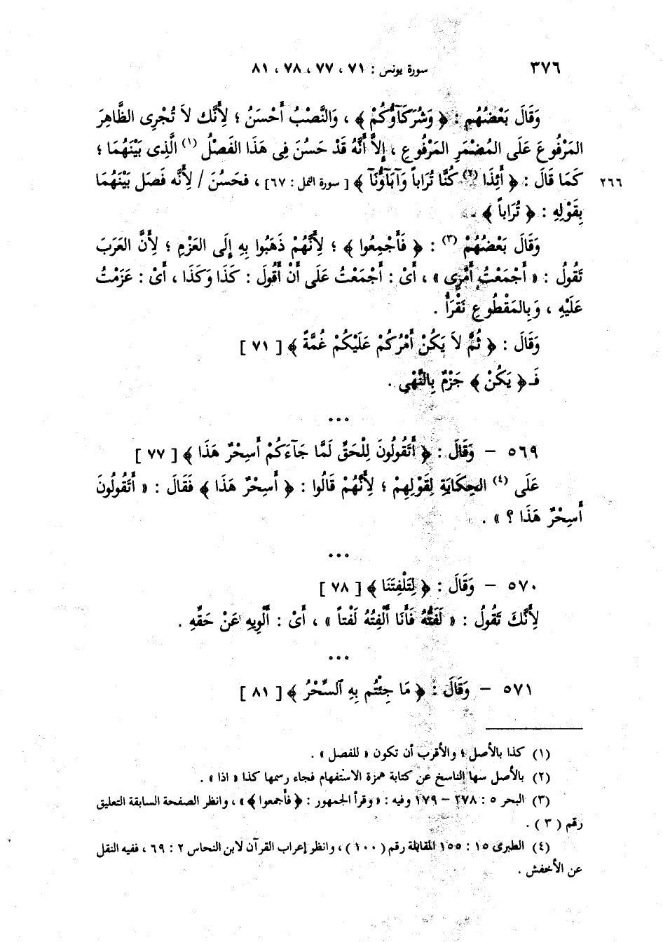 وقال {فَأَجْمِعُواْ أَمْرَكُمْ وَشُرَكَآءَكُمْ} وقال بعضهم (وشُرَكاؤُكُمْ) والنصب أحسن لانك لا تجري الظاهر المرفوع على المضمر المرفوع الا انه قد حسن في هذا للفصل الذي بينهما كما قال {أَإِذَا كُنَّا تُرَاباً وَآبَآؤُنَآ} فحسن [133 ء] لانه فصل بينهما بقوله ترابا. وقال بعضهم (فَأَجْمِعوا) لأَنَّهُم ذهبوا به الى "العَزْمِ" لأَنَّ العرب تقول "أَجْمَعْتُ أَمْرِي" أي: أَجْمَعْتُ على أَنْ أَقُول كذا وكذا. أي عَزَمْتُ عليه. وبالمَقْطُوعِ نقرأ.