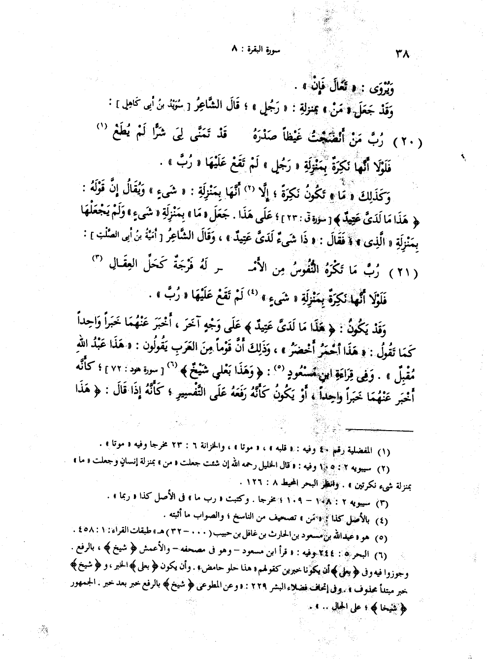 فلولا انها نكرة بمنزلة "مَنْ" لم تقع عليها "رُبَّ". وقد يكون {هذا مالَدَيَّ عَتِيدٌ} على وجه آخر، أخبر عنهما خبرا واحدا كما تقول: "هذا أحمرُ أخضرُ". وذلك ان قوما من العرب يقولون: "هذا عبدُ اللَّهِ مقبلٌ". وفي قراءة ابن مسعود {وهذا بَعلي شَيْخٌ} كأنه أخبر عنهما خبرا واحدا او يكون كأنه رفعه على التفسير كأنه اذا قال {هذا