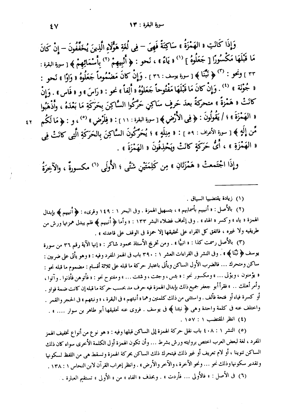 واذا كانت الهمزة ساكنة فهي في لغة هؤلاء الذين يخففون ان كان ما قبلها مكسورا ياء نحو {أنبِيهم بأسمايهم} ونحو (نَبِّينا) *. وإن كان مضموما جعلوها واوا نحو "جونَه"، وان كان ما قبلها مفتوحا جعلوه الفا نحو "راس" و "فاس". وان كانت همزة متحركة بعد حرف ساكن حرّكوا الساكن بحركة ما بعده واذهبوا الهمزة [21ء] يقولون [في] "في الارض": (فِلَرْض) [وفي] {مَا لَكُمْ مِّنْ اله} : (مِنِلاهٍ) يحركون الساكن بالحركة التي كانت في الهمزة اي حركة كانت ويحذفون الهمزة.