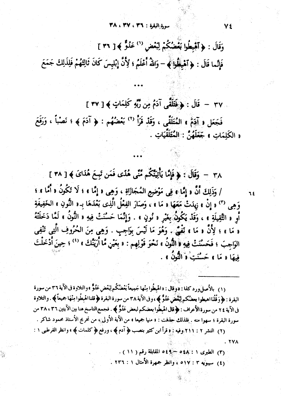 قال {فَإِمَّا يَأْتِيَنَّكُم مِّنِّي هُدًى فَمَن تَبِعَ هُدَايَ} [32ء] وذلك أن "إمّا" في موضع المجازاة وهي "إما" لا تكون "أَمَا" وهي "إنْ" زيدت معها "ما" وصار الفعل الذي بعدها بالنونِ الخفيفةِ أو الثقيلة وقد يكون بغير نون. وإنَّما حسنت فيه النون لما دخلته "ما" لأنَّ "ما" نفي وهو ما ليس بواجب وهي من الحروف التي تنفي الواجب فحسنت فيه النون نحو قولهم "بِعينٍ مّا أَرَيَنَّك" حين أدخلت فيها "ما" حسنت النون.