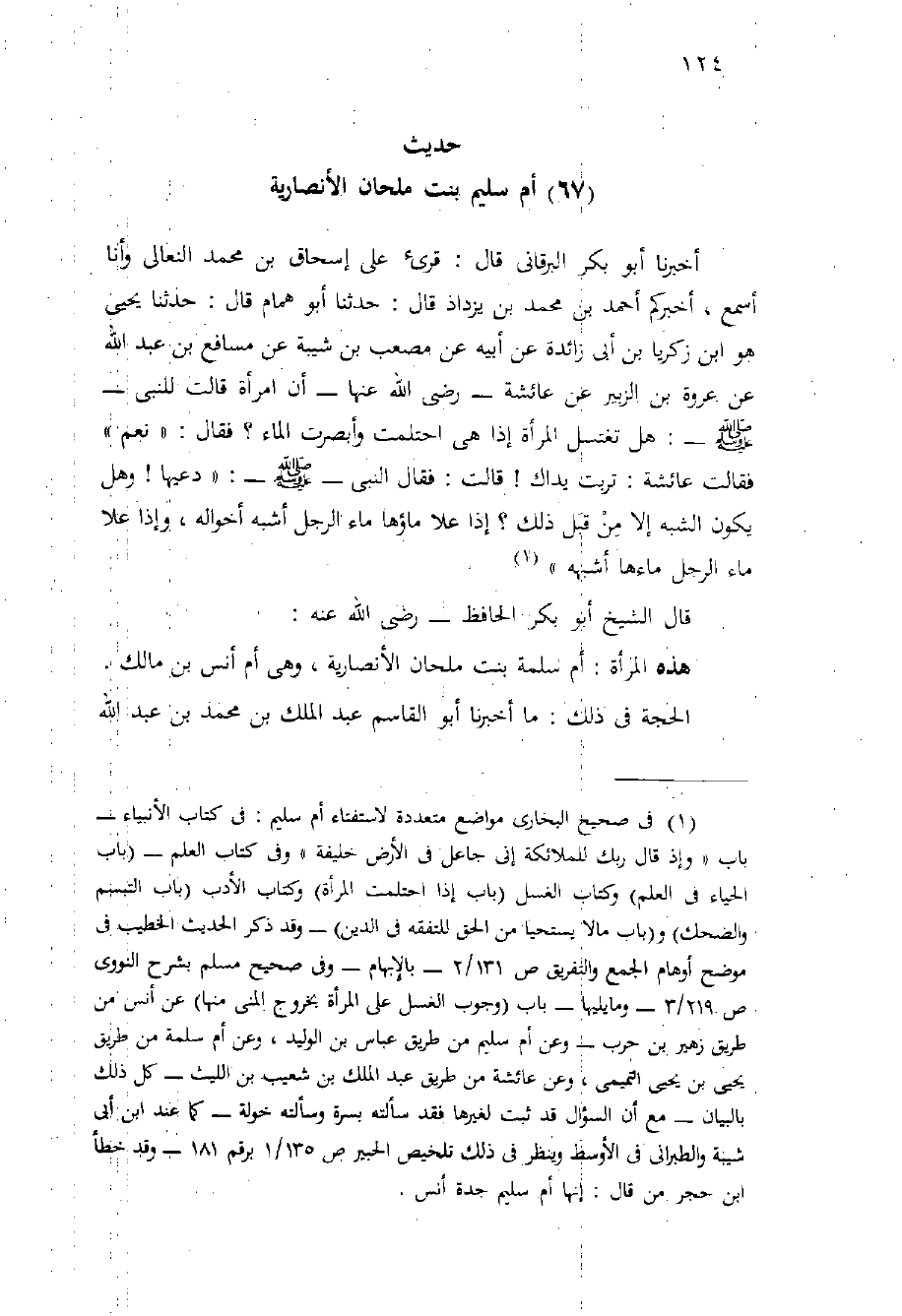 (حديث (67) أم سليم بِنْت ملحان الأنصارية)