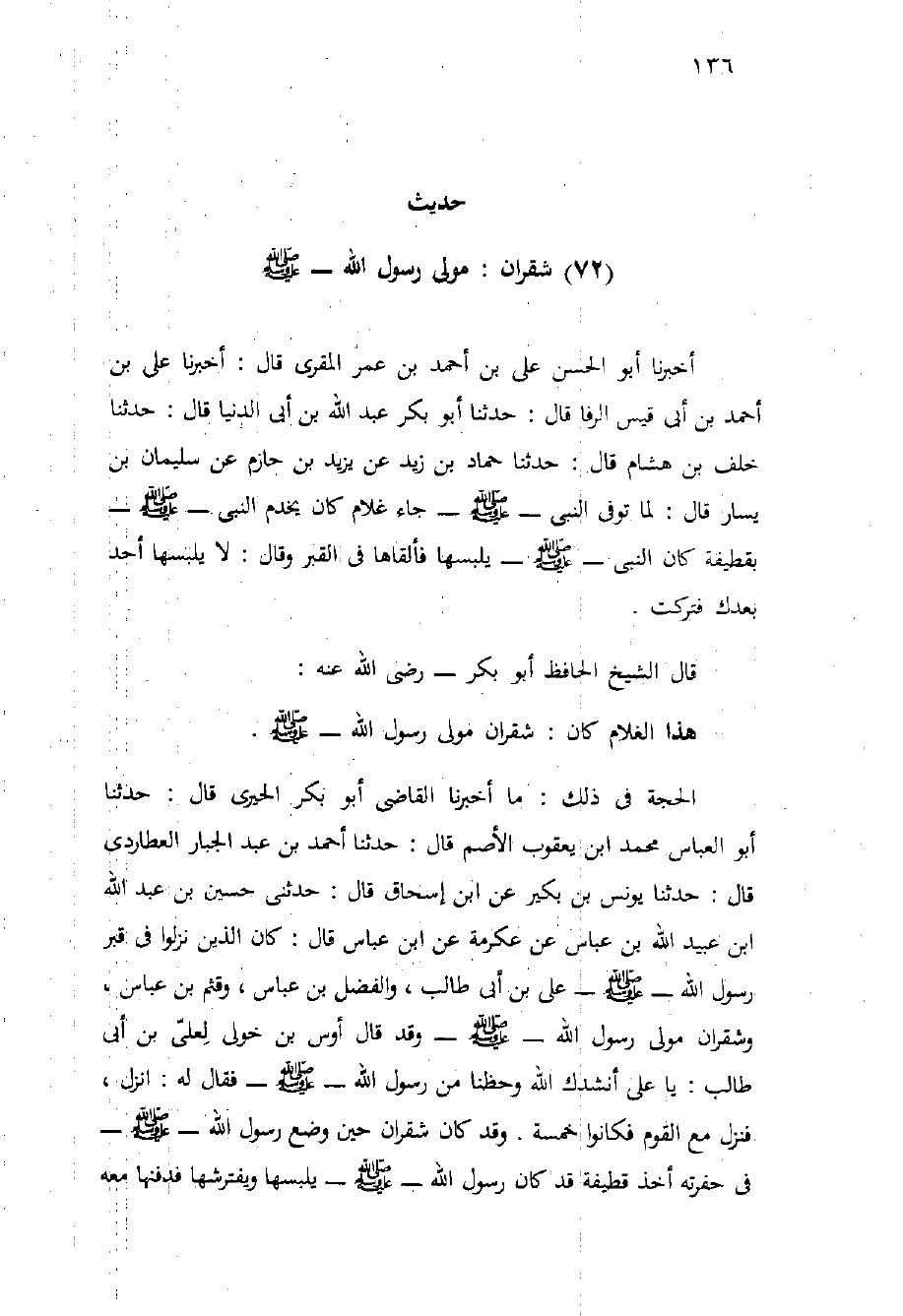 (حديث (72) شَقْرَانُ: مَوْلَى رَسُولِ اللَّهِ - صَلَّى اللَّهُ عَلَيْهِ وَسَلَّم َ -)