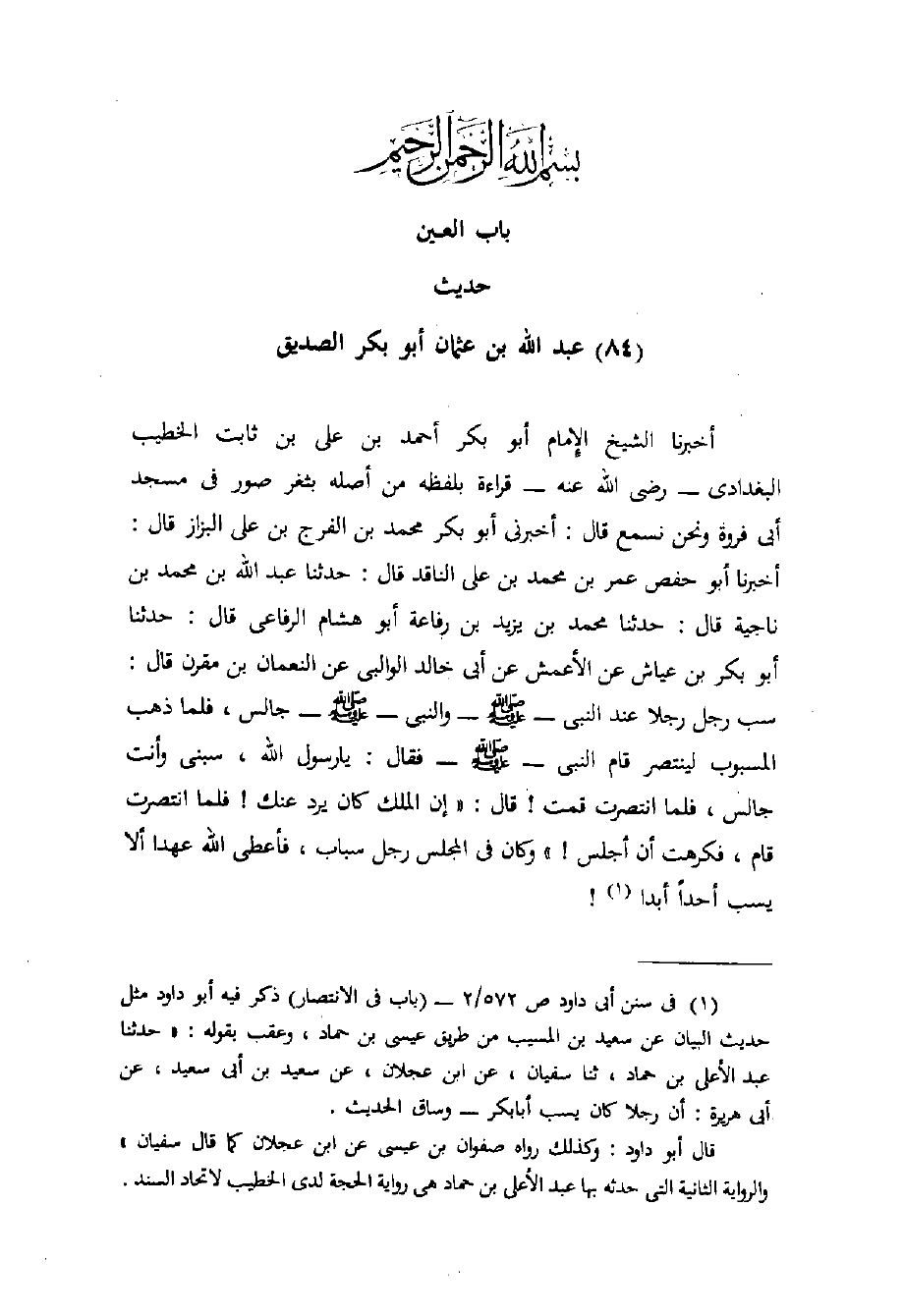 (حديث (84) عبد اللَّهِ بْن عُثْمَان أَبُو بَكْر الصديق)