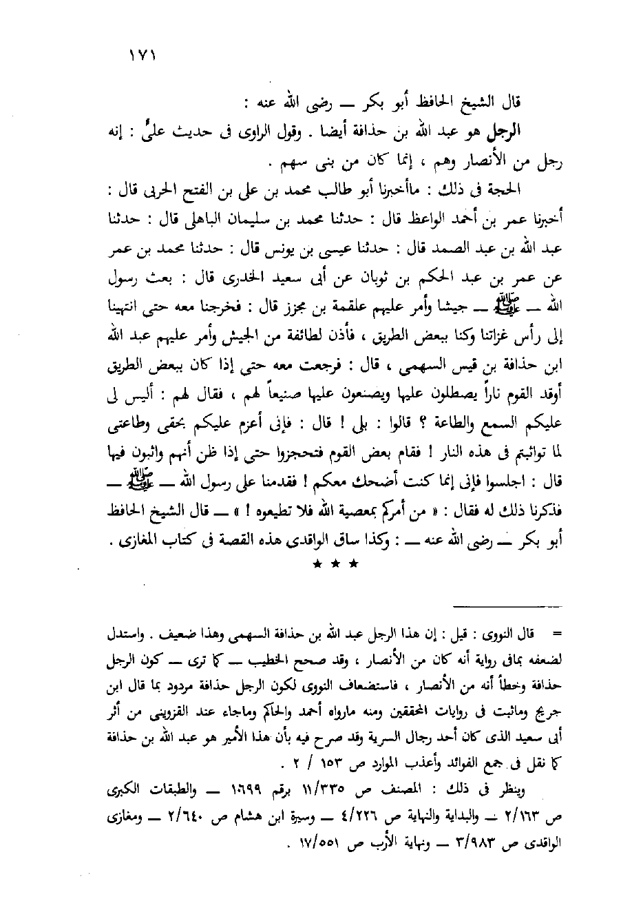 الرَّجُلُ هُوَ عَبْدُ اللَّهِ بْنُ حُذَافَةَ أَيْضًا. وَقَوْلُ الرَّاوِي فِي حَدِيثِ عَلِيٍّ: إِنَّهُ رَجُلٌ مِنَ الأَنْصَارِ وَهْمٌ، إِنَّمَا كَانَ مِنْ بَنِي سَهْمٍ.