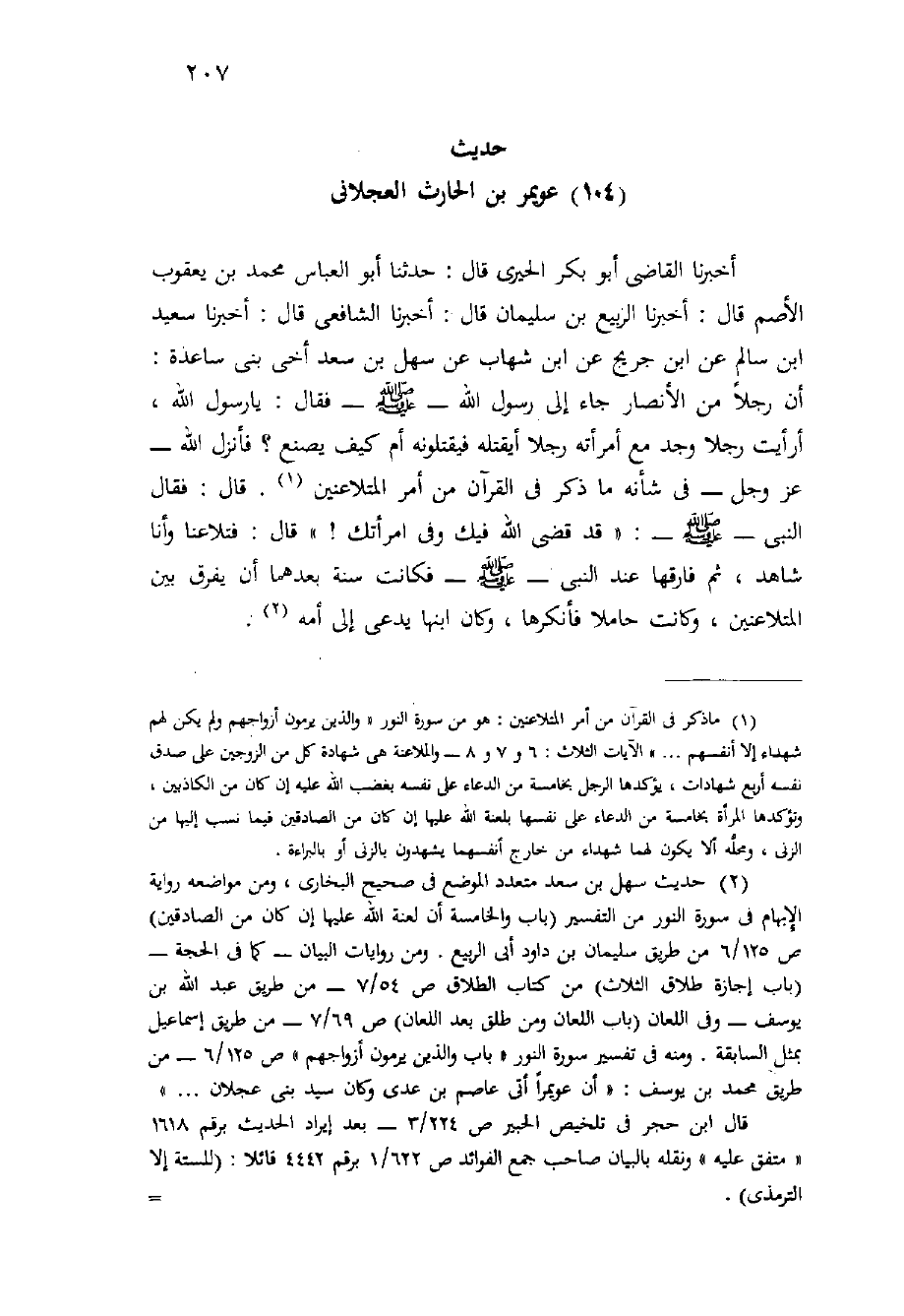 (حديث (104) عويمر بْن الْحَارِث العجلاني)