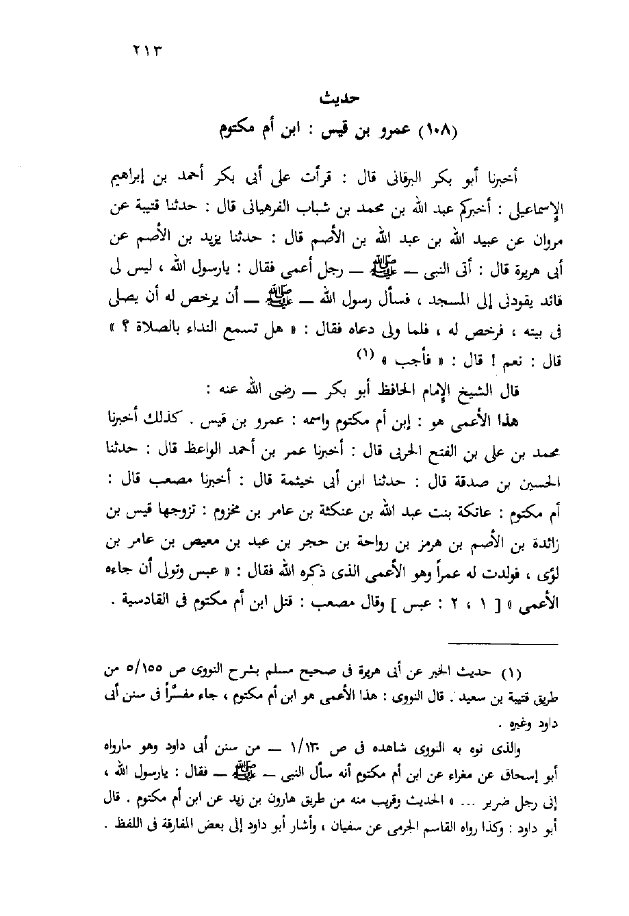 (حديث (108) عمرو بْن قَيْس: ابن أم مكتوم)
