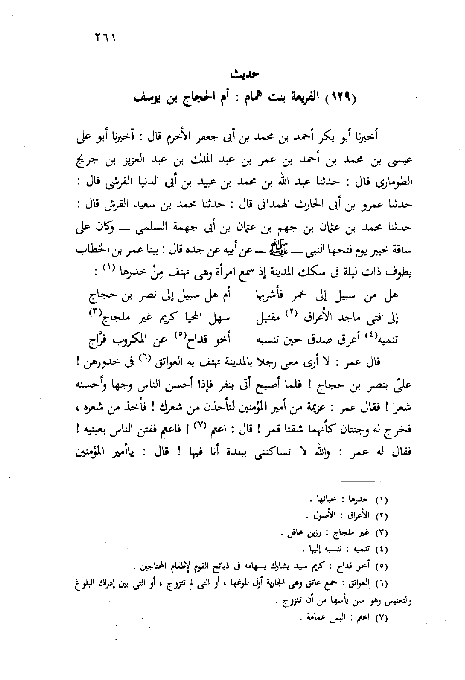 (حديث (129) الْفُرَيْعَةُ بِنْتُ هَمَّامٍ: أُمُّ الْحَجَّاجِ بْن يُوسُفَ)