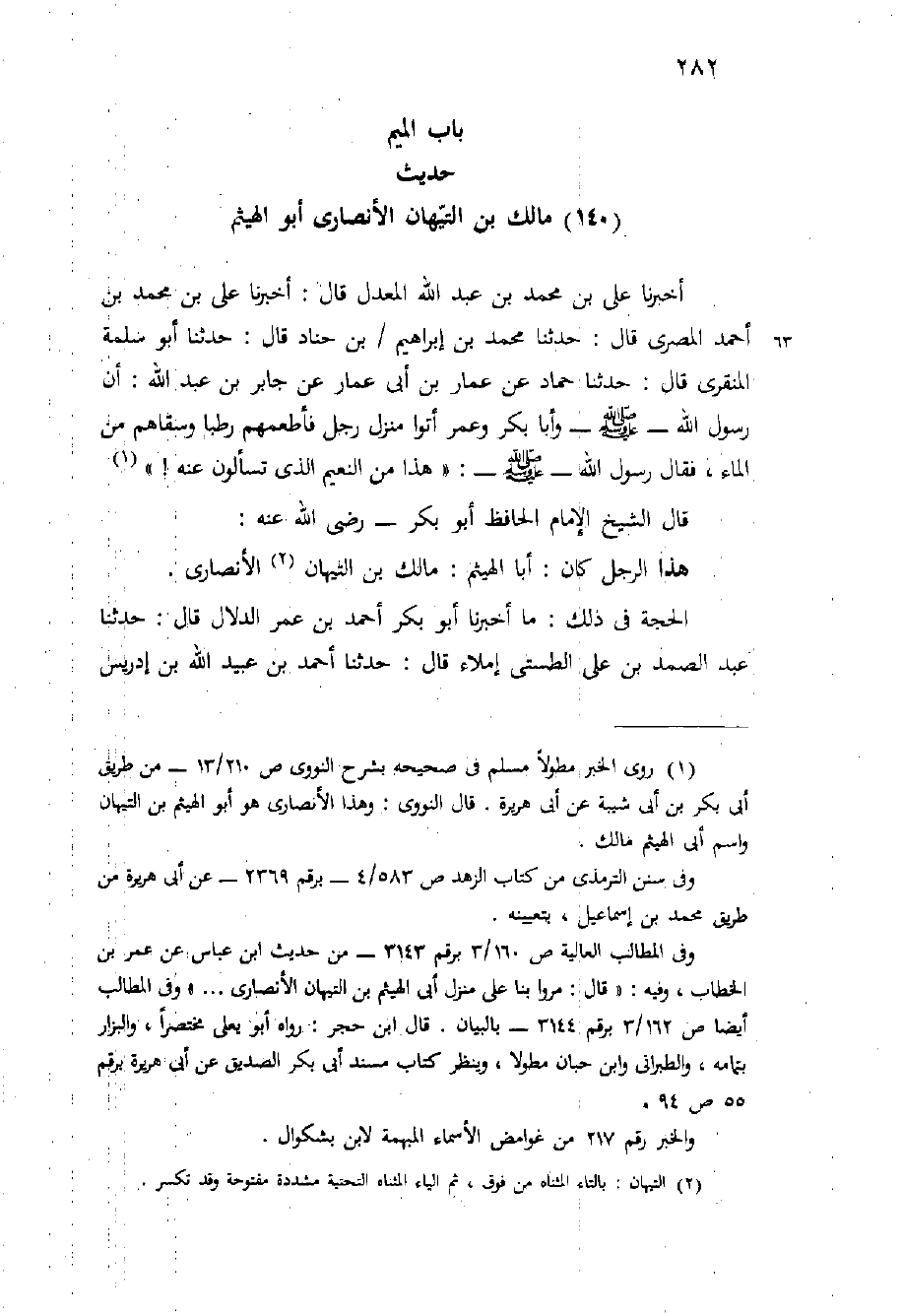 (حديث (140) مالك بْن التيهان الْأَنْصَارِيّ أَبُو الهيثم)