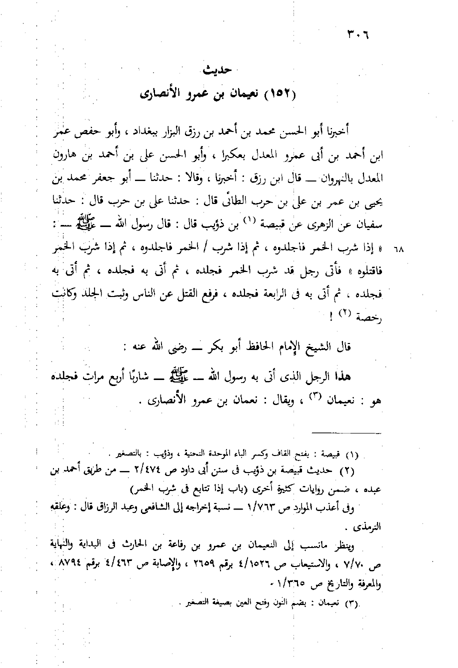 هَذَا الرَّجُلُ الَّذِي أَتَى بِهِ رَسُولُ اللَّهِ - صَلَّى اللَّهُ عَلَيْهِ وَسَلَّم َ - شاربًا أَرْبَعَ مَرَّاتٍ فَجَلَدَهُ هُوَ: نعيمان، وَيُقَالُ: نُعْمَانُ بْنُ عَمْرٍو الْأَنْصَارِيَّ.