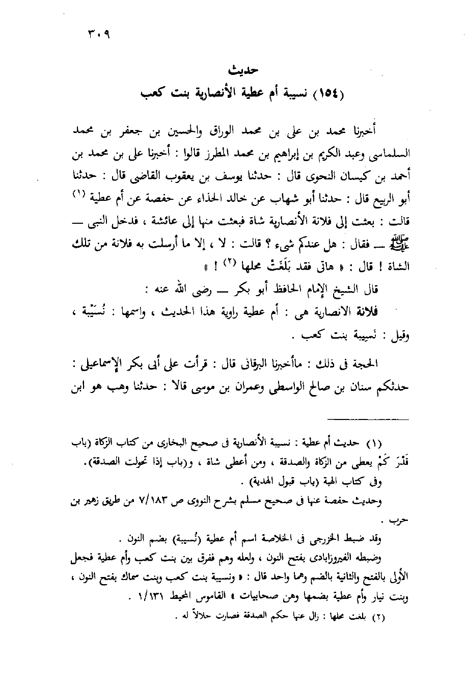 (حديث (154) نسيبة أم عطية الأنصارية بِنْت كعب)