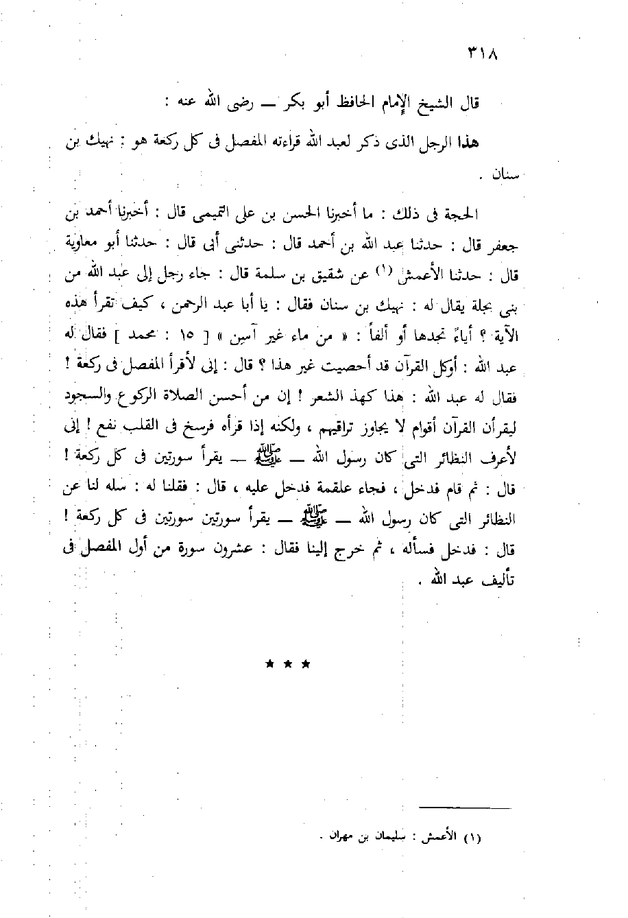 هَذَا الرَّجُلُ الَّذِي ذَكَرَ لِعَبْدِ اللَّهِ قِرَاءَتَهُ الْمُفَصَّلُ فِي كُلِّ رَكْعَةٍ هُوَ: نَهِيكُ بْنُ سِنَانٍ.