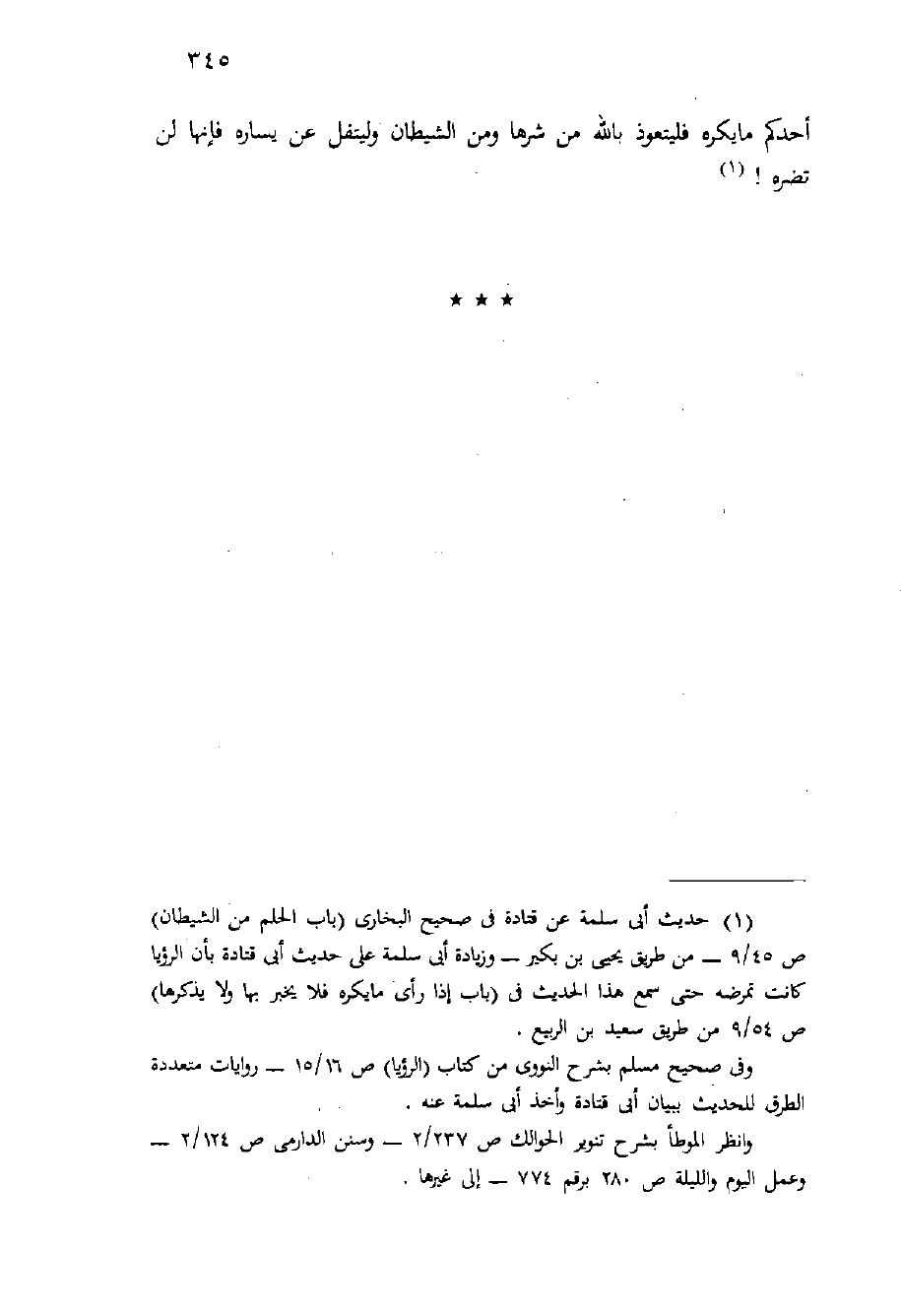 أَحَدُكُمْ مَا يَكْرَهُ فَلْيَتَعَوَّذْ بِاللَّهِ مِنْ شَرِّهَا وَمِنَ الشَّيْطَانِ وَلْيَتْفُلْ عن يساره فإنها لن تضره!