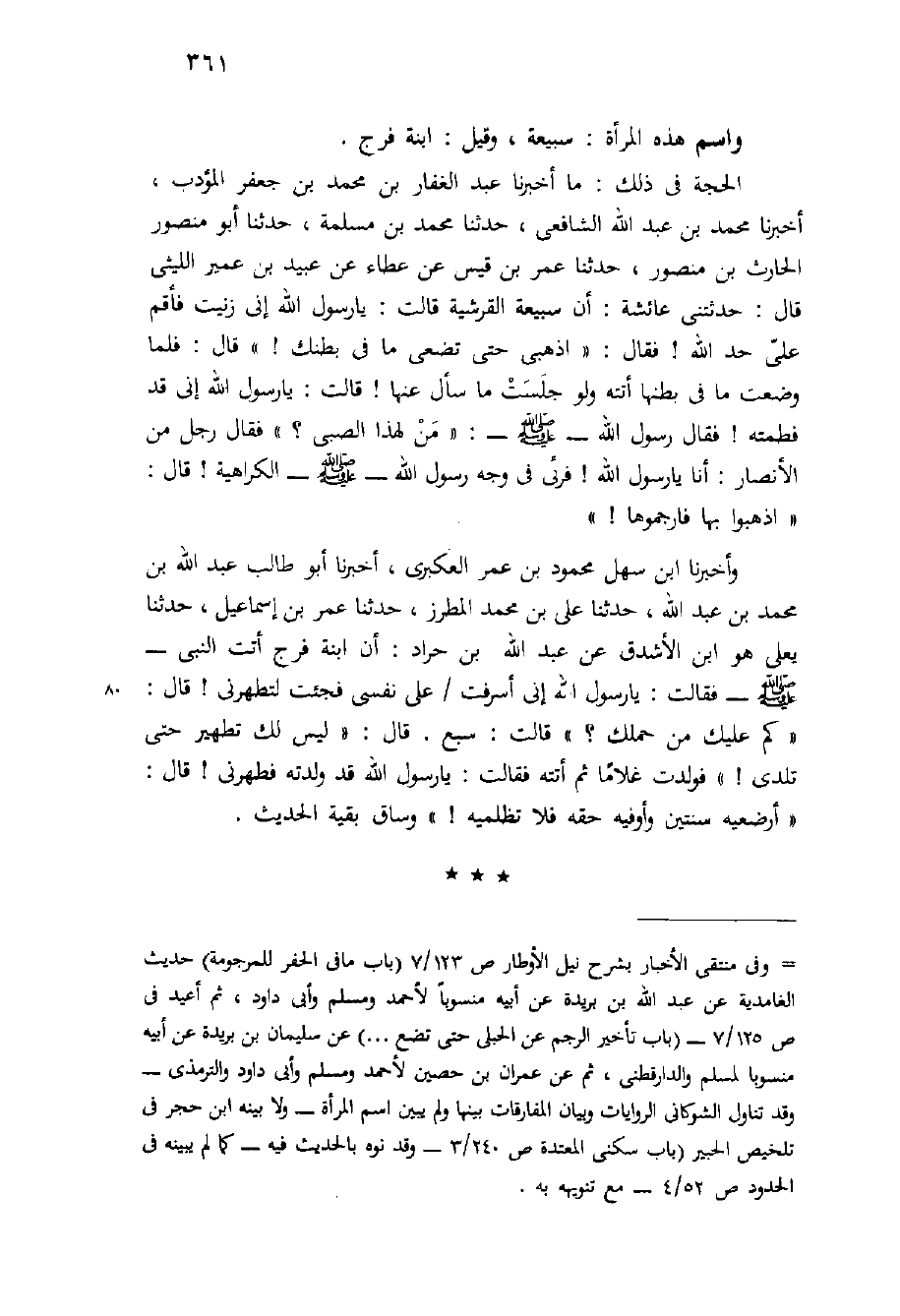 وَاسْمُ هَذِهِ الْمَرْأَةِ: سُبَيْعَةُ، وَقِيلَ: ابْنَةُ فَرَجٍ.