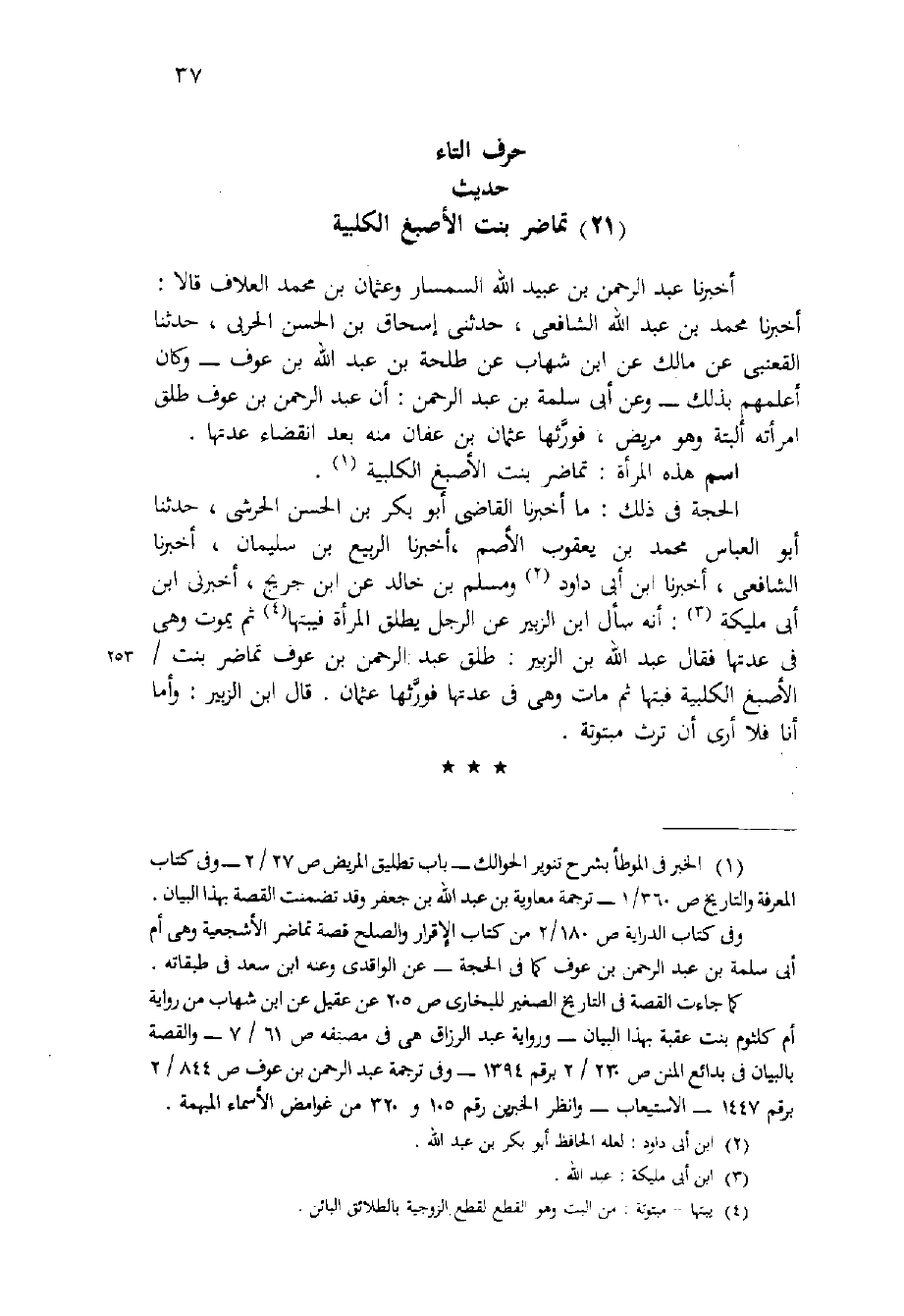 (حديث (21) تماضر بِنْت الأصبغ الكلبية)