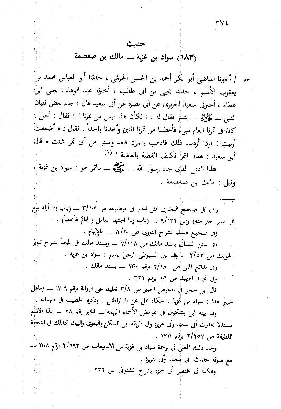 (حديث (183) سواد بْن غزية - مَالِك بْن صعصعة)