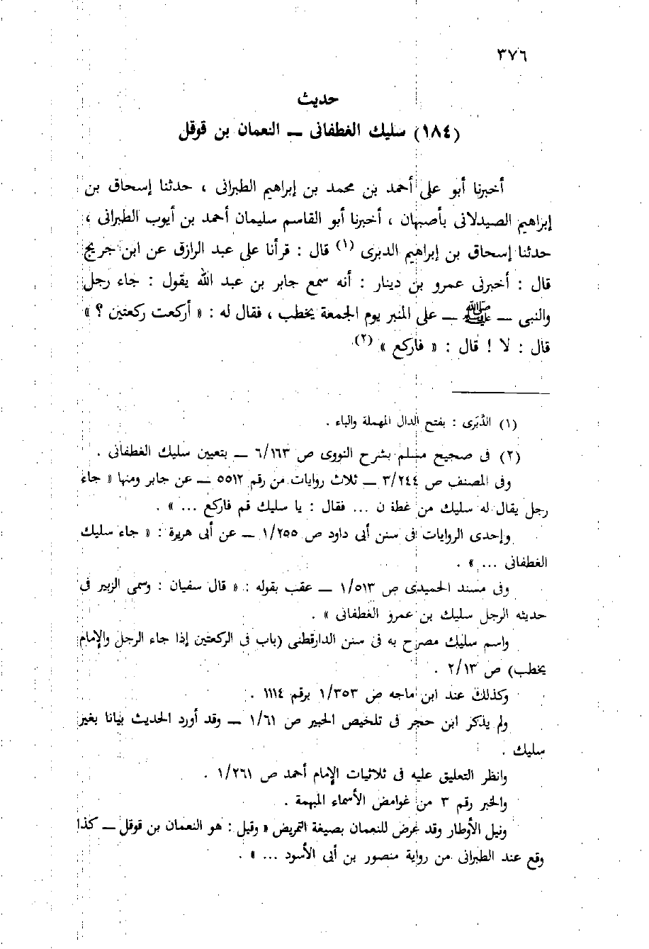 (حديث (184) سليك الغطفاني - النعمان بْن قَوْقَلٍ)