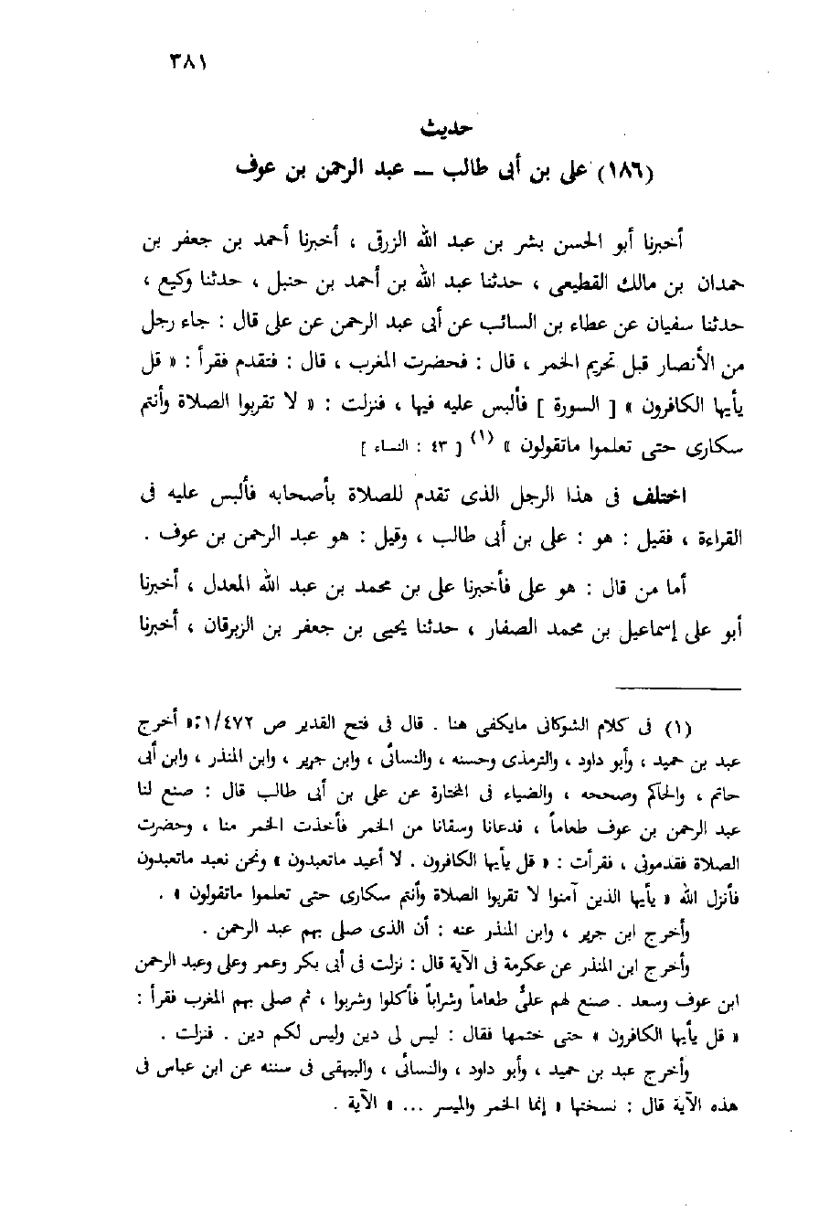 (حديث (186) علي بْن أَبِي طَالِب - عَبْد الرَّحْمَنِ بْن عوف)