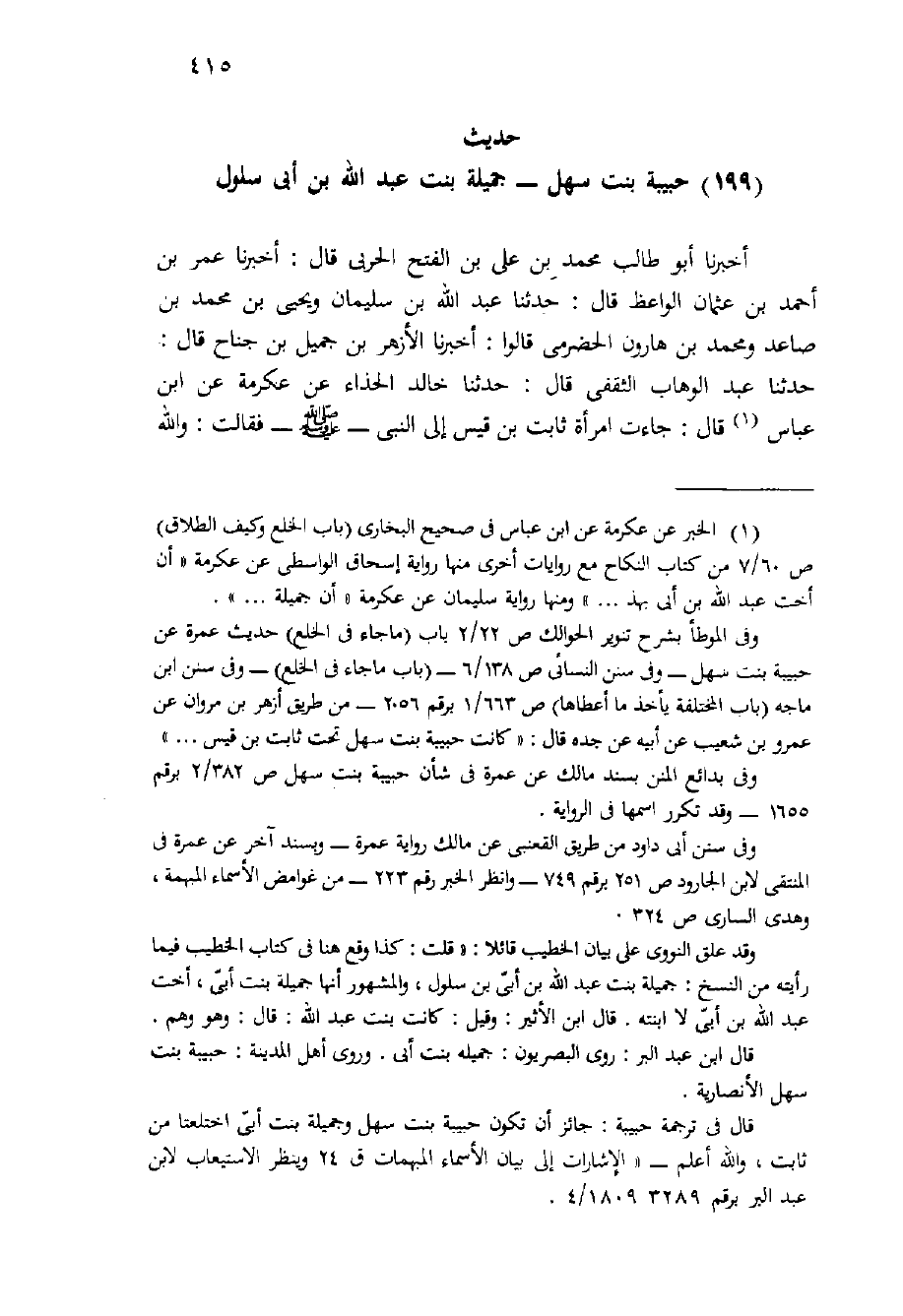 (حديث (199) حبيبة بِنْت سهل - جميلة بِنْت عَبْد اللَّهِ بْن أبي سلول)