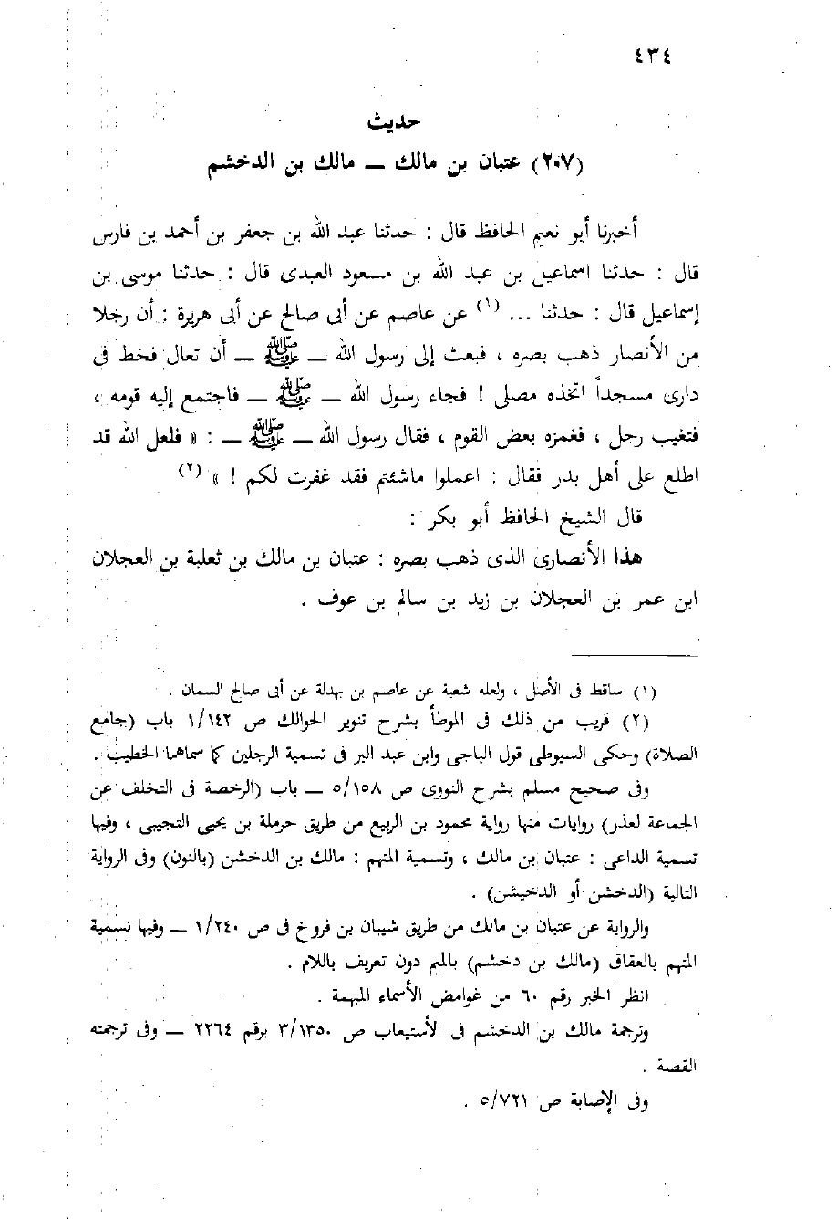 (حديث (207) عتبان بْن مَالِك - مَالِك بْن الدخشم)