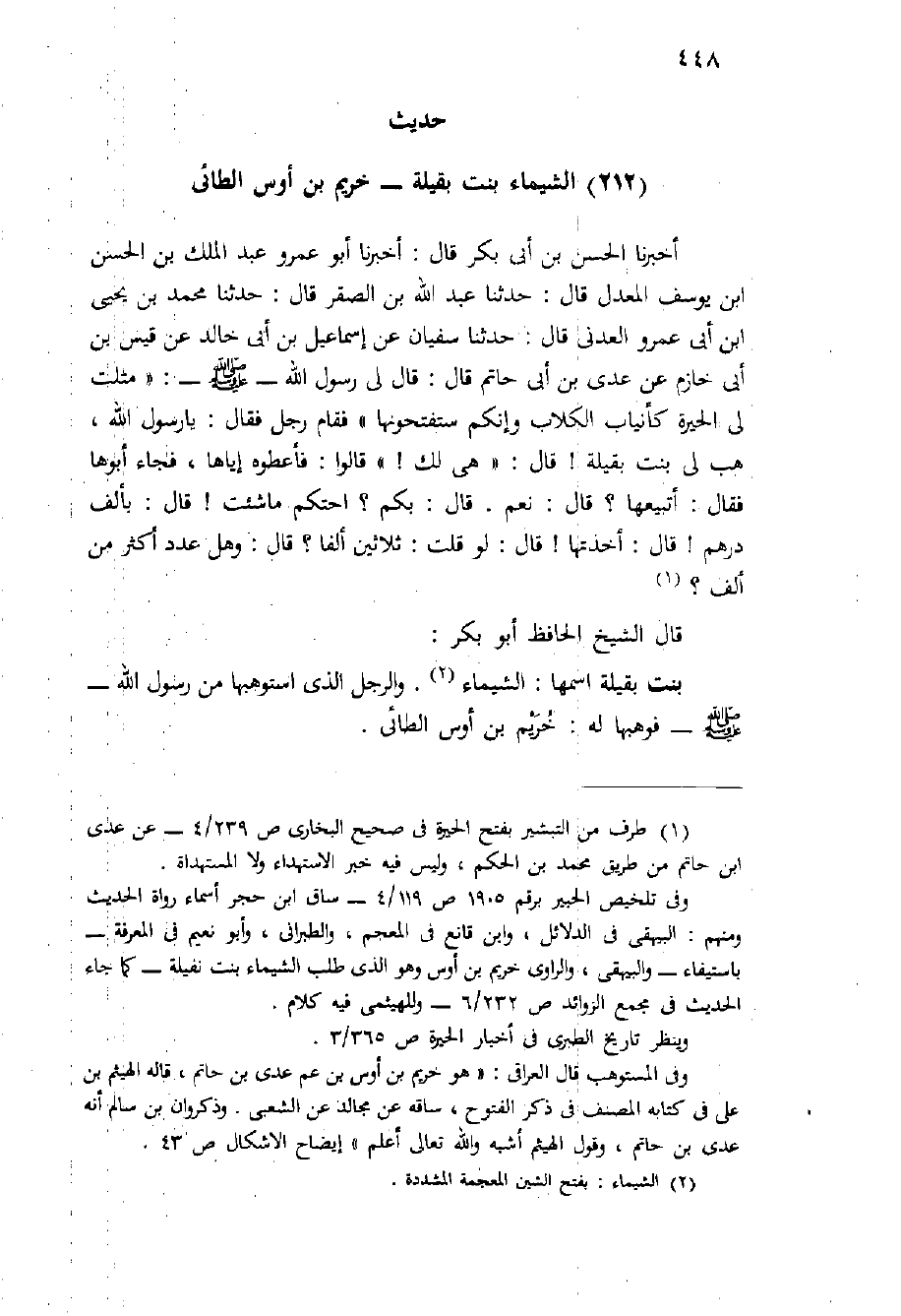 (حديث (212) الشيماء بِنْت بقيلة - خريم بْن أوس الطائي)