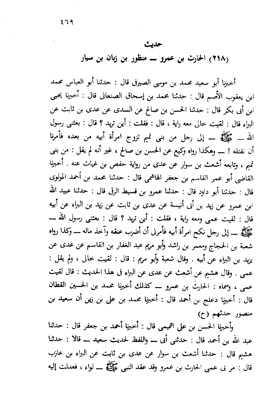 (حديث (218) الحارث بْن عَمْرو - منظور بْن زبان بْن سيار)