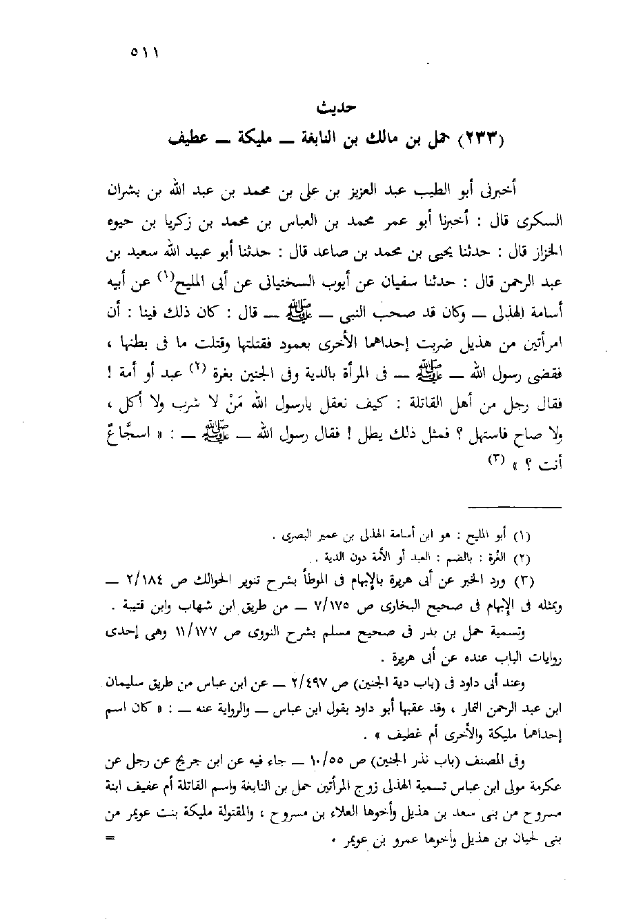 (حديث (233) حمل بْن مَالِك بْن النابغة - مليكة - عطيف)