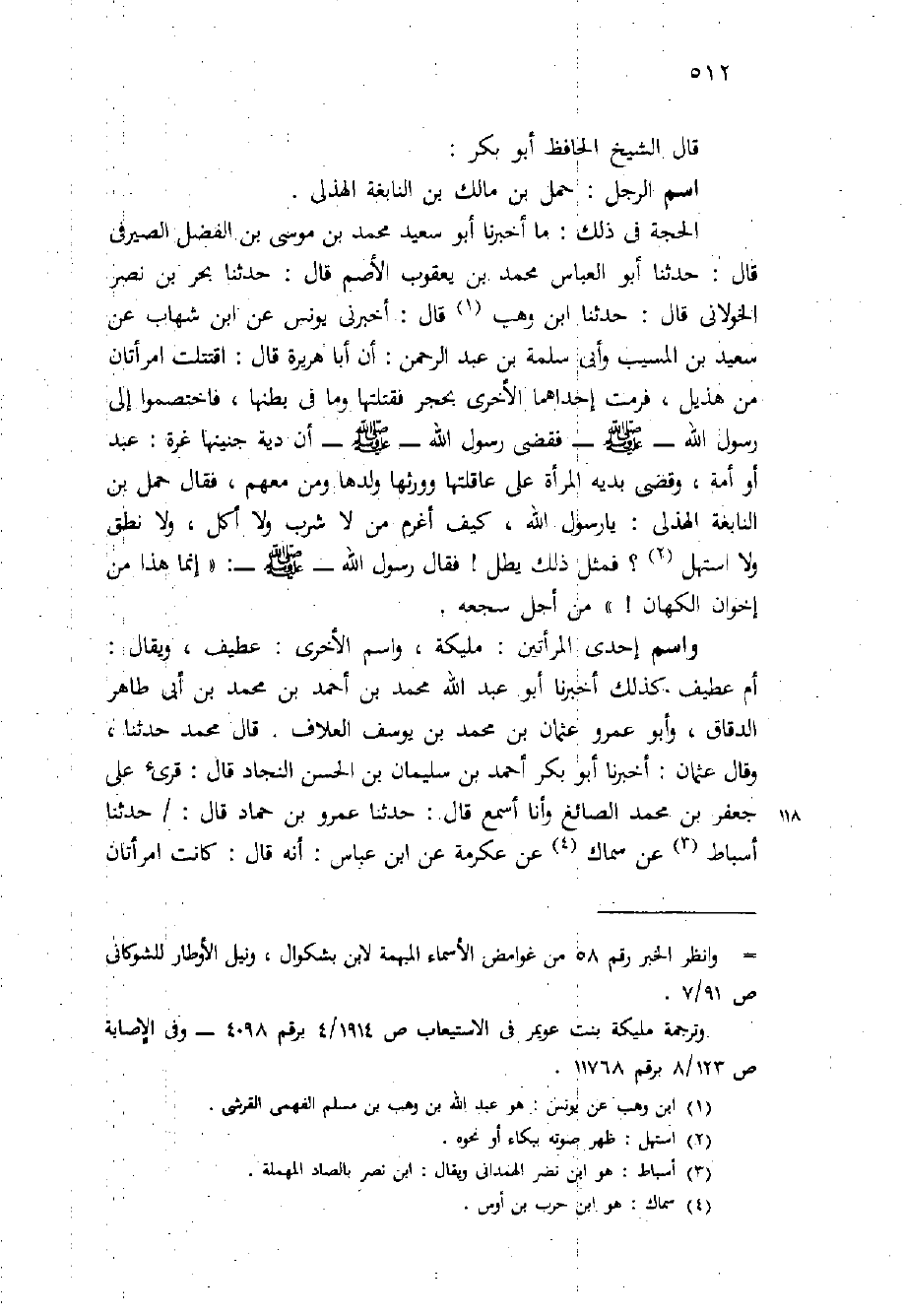 الحجة فِي ذلك: مَا أَخْبَرَنَا أَبُو سَعِيدٍ مُحَمَّدُ بْنُ مُوسَى بْنِ الْفَضْلِ الصَّيْرَفِيُّ قَالَ: حَدَّثَنَا أَبُو الْعَبَّاسِ مُحَمَّدُ بْنُ يَعْقُوبَ الأَصَمُّ قَالَ: حَدَّثَنَا بَحْرُ بْنُ نَصْرٍ الْخَوْلانِيُّ قَالَ: حَدَّثَنَا ابْنُ وَهْبٍ قَالَ: أَخْبَرَنِي يُونُسُ عَنِ ابْنِ شِهَابٍ عَنْ سَعِيدِ بْن الْمُسَيِّبِ وَأَبِي سَلَمَةَ بْنِ عَبْدِ الرَّحْمَنِ: أَنَّ أَبَا هُرَيْرَةَ قَالَ: اقْتَتَلَتِ امْرَأَتَانِ مِنْ هُذَيْلٍ، فَرَمَتْ إِحْدَاهُمَا الأُخْرَى بحجر فقتلتها وَمَا فِي بَطْنِهَا، فَاخْتَصَمُوا إِلَى رَسُولُ اللَّهِ - صَلَّى اللَّهُ عَلَيْهِ وَسَلَّم َ - فَقَضَى رَسُولُ اللَّهِ - صَلَّى اللَّهُ عَلَيْهِ وَسَلَّم َ - أَنَّ دِيَةَ جَنِينِهَا غُرَّةَ: عَبْدٍ أَوْ أَمَةٍ، وَقَضَى بِدِيَةِ الْمَرْأَةِ عَلَى عَاقِلَتِهَا وَوَرِثَهَا وَلَدُهَا وَمَنْ مَعَهُمْ، فَقَالَ حَمَلُ بْنُ النَّابِغَةِ الْهُذَلِيُّ: يَا رَسُولَ اللَّهِ، كَيْفَ أَغْرَمُ مَنْ لا شَرِبَ وَلا أَكَلَ، وَلا نَطَقَ وَلا اسْتَهَلَّ؟ فَمِثْلُ ذَلِكَ يُطَلُّ {فَقَالَ رَسُولُ اللَّهِ - صَلَّى اللَّهُ عَلَيْهِ وَسَلَّم َ -: " إِنَّما هَذَا مِنْ إِخْوَانِ الْكُهَّانِ} " مِنْ أَجْلِ سَجْعِهِ.
