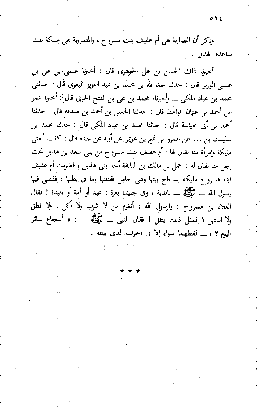 وذكر أن الضاربة هِيَ أم عفيف بِنْت مسروح، والمضروبة هِيَ مليكة بِنْت ساعدة الهذلي.