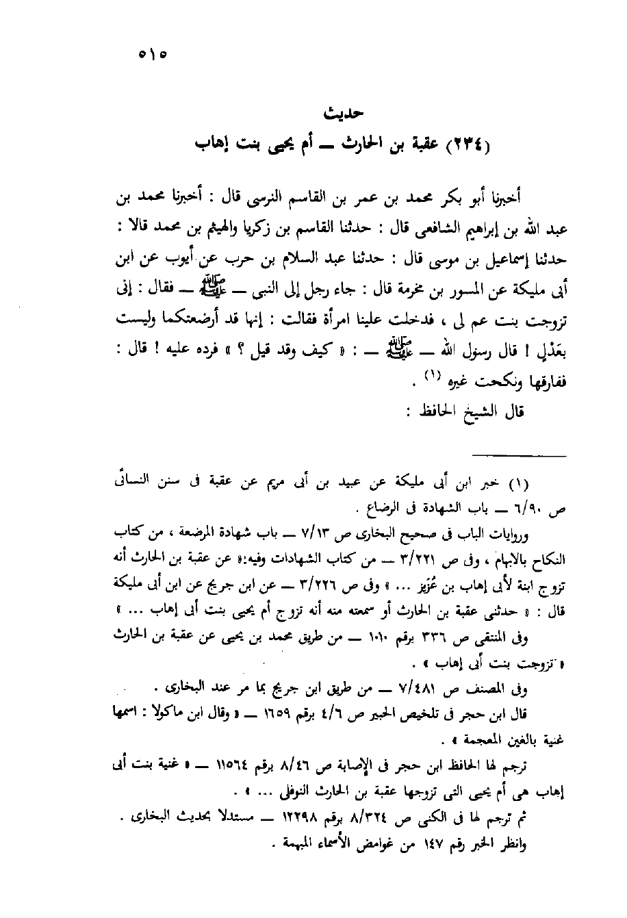 (حديث (234) عقبة بْن الحارث - أم يَحْيَى بِنْت إهاب)