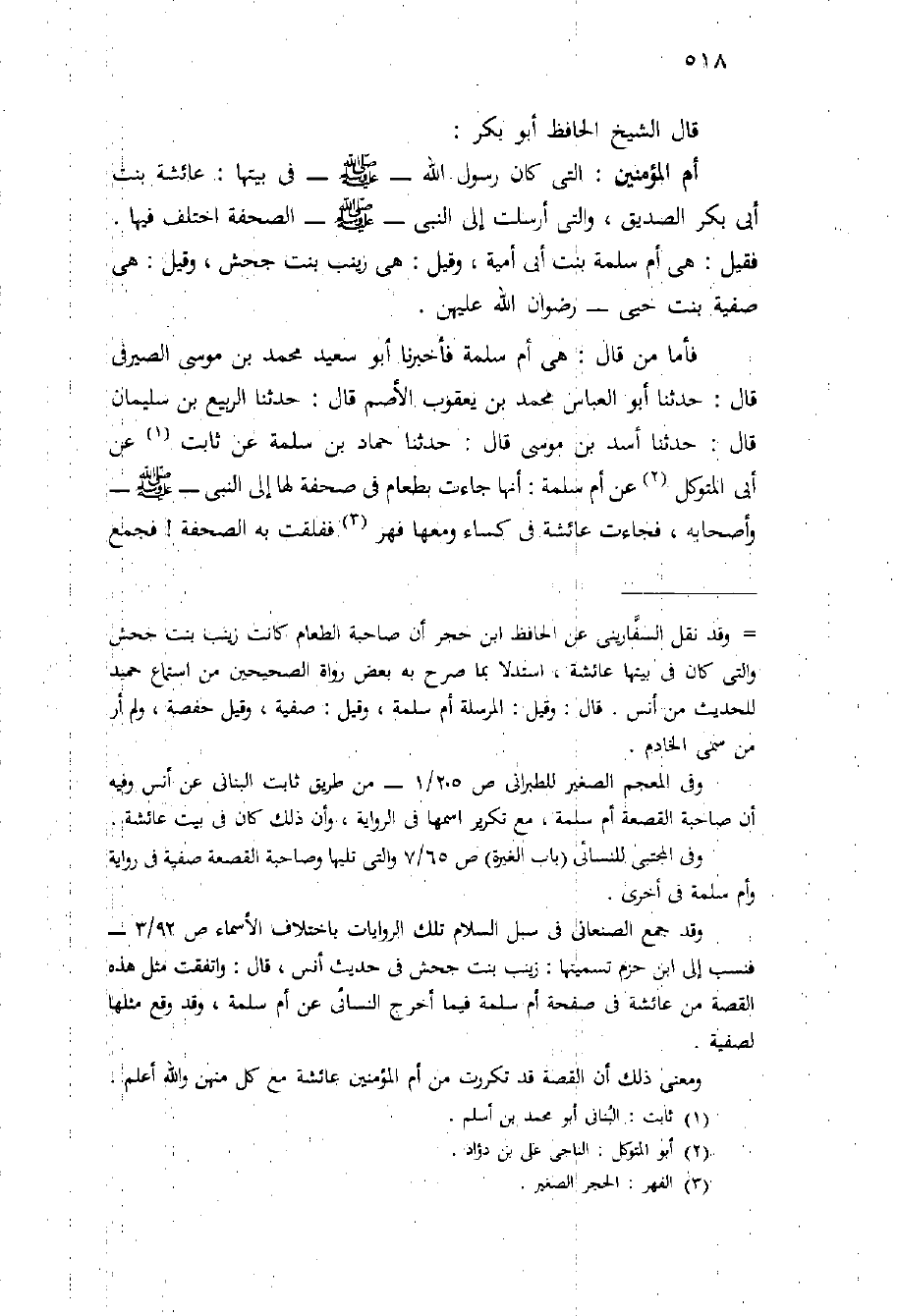 أم المؤمنين: التي كَانَ رَسُول اللَّهِ - صَلَّى اللَّهُ عَلَيْهِ وَسَلَّم َ - فِي بيتها: عَائِشَة بِنْت أَبِي بَكْر الصديق، والتي أرسلت إلى النَّبِيِّ - صَلَّى اللَّهُ عَلَيْهِ وَسَلَّم َ - الصحفة اختلف فيها. فقيل: هِيَ أم سَلَمة بِنْت أَبِي أُمَيَّة، وقيل: هِيَ زينب بِنْت جحش، وقيل: هِيَ صفية بِنْت حيي - رضوان اللَّه عليهن.