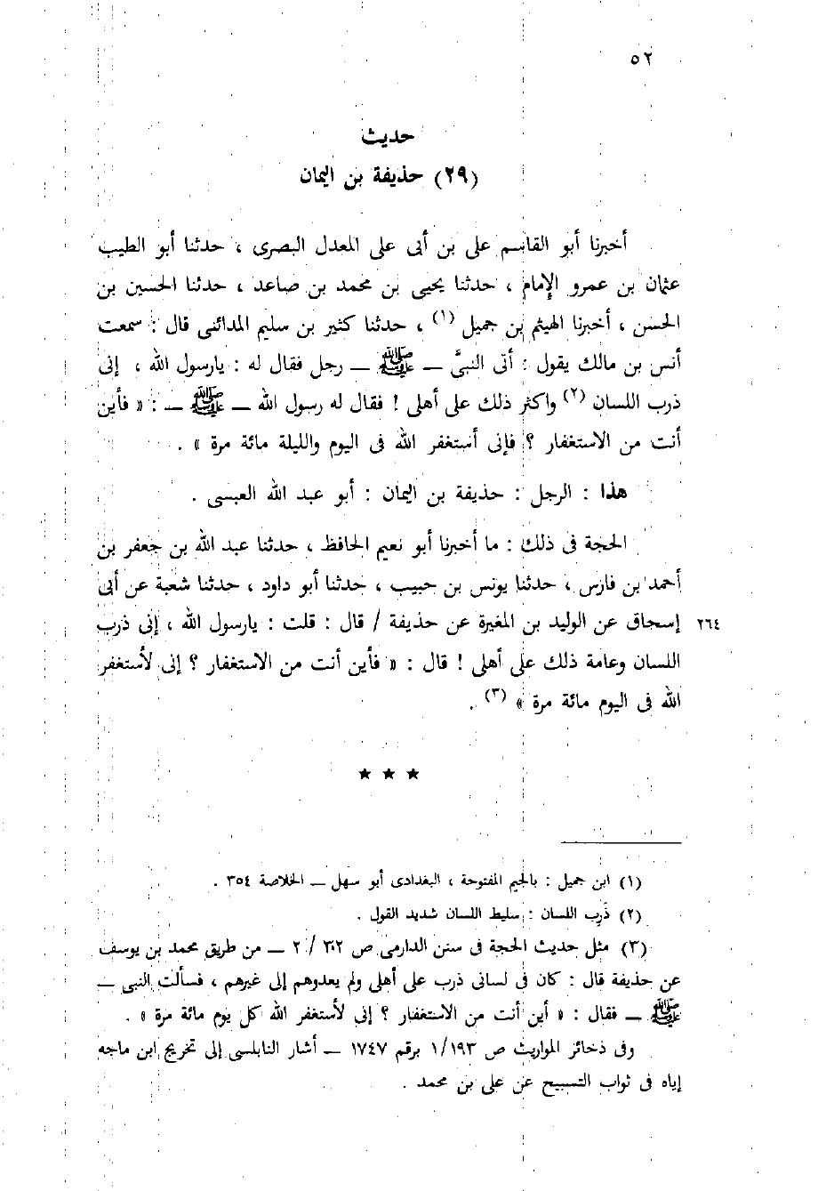 الحجة فِي ذلك: مَا أَخْبَرَنَا أَبُو نُعَيْمٍ الْحَافِظُ، حَدَّثَنَا عَبْدُ اللَّهِ بْنُ جَعْفَرِ بْنِ أَحْمَدَ بْنِ فَارِسٍ، حَدَّثَنَا يُونُسُ بْنُ حَبِيبٍ، حَدَّثَنَا أَبُو دَاوُدَ، حَدَّثَنَا شُعْبَةُ عَنْ أَبِي إِسْحَاقَ عَنِ الْوَلِيدِ بْنِ الْمُغِيرَةِ عَنْ حُذَيْفَةَ / قَالَ: قُلْتُ: يَا رَسُولَ اللَّهِ، إِنِّي ذَرِبُ اللِّسَانِ وَعَامَّةُ ذَلِكَ عَلَى أَهْلِي} قَالَ: " فَأَيْنَ أَنْتَ مِنَ الاسْتِغْفَارِ؟ إِنِّي لأَسْتَغْفِرُ اللَّهَ فِي الْيَوْمِ مِائَةَ مَرَّةٍ ".