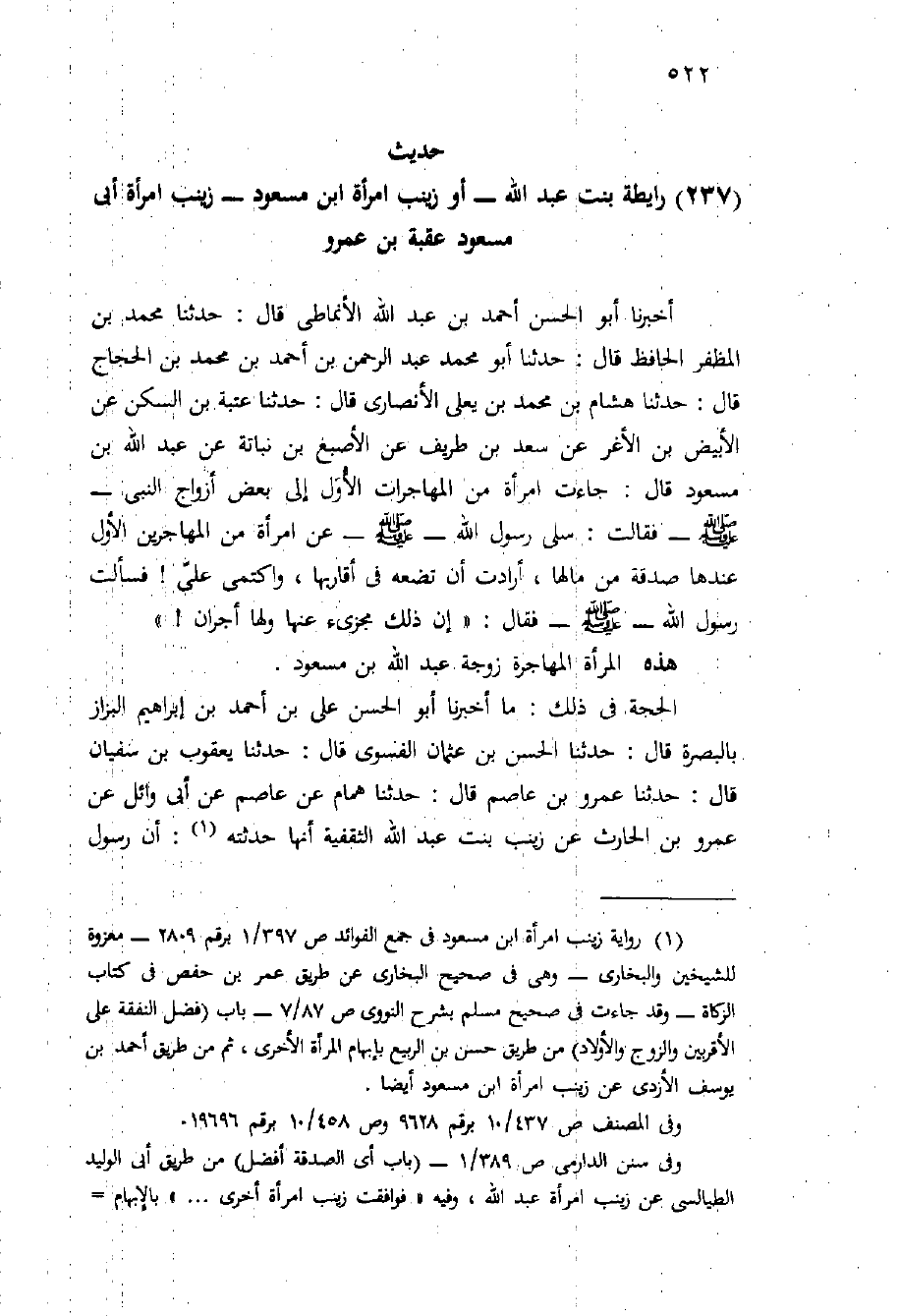 (حديث (237 رايطة بِنْت عَبْد اللَّهِ - أَوْ زينب امْرَأَة ابْن مَسْعُود - زينب امْرَأَة أَبِي مَسْعُود عقبة بْن عَمْرو)
