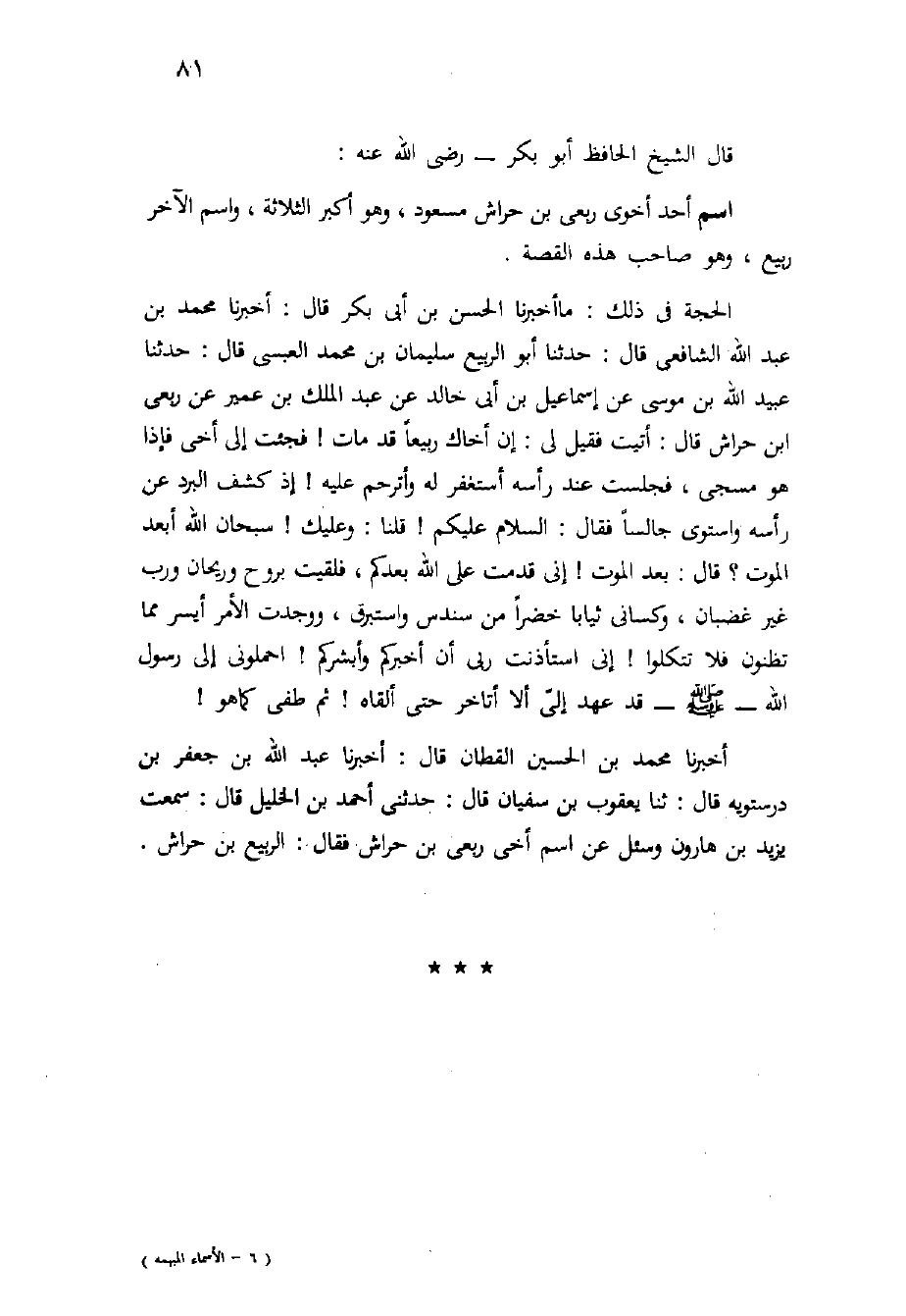 قَالَ الشَّيْخُ الْحَافِظُ أَبُو بَكْرٍ - رَضِيَ اللَّه عَنْهُ: