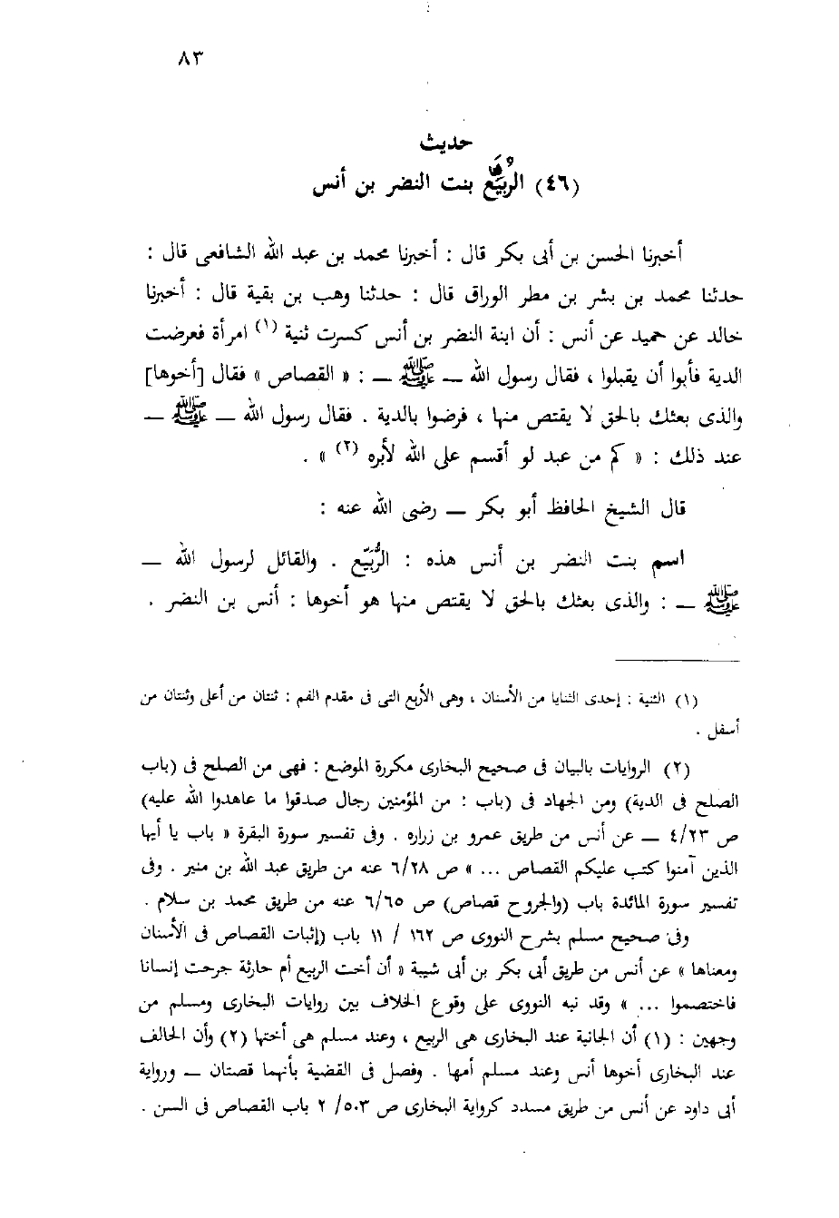 (حديث (46) الربيع بِنْت النَّضْر بْن أَنَس)