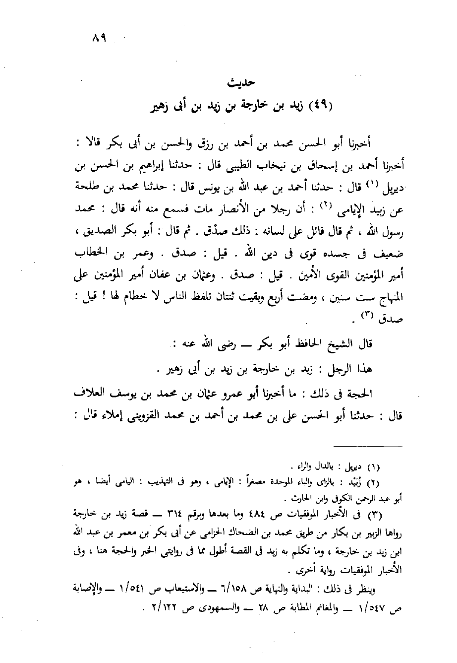(حديث (49) زَيْد بْن خارجة بْن زَيْد بْن أَبِي زهير)