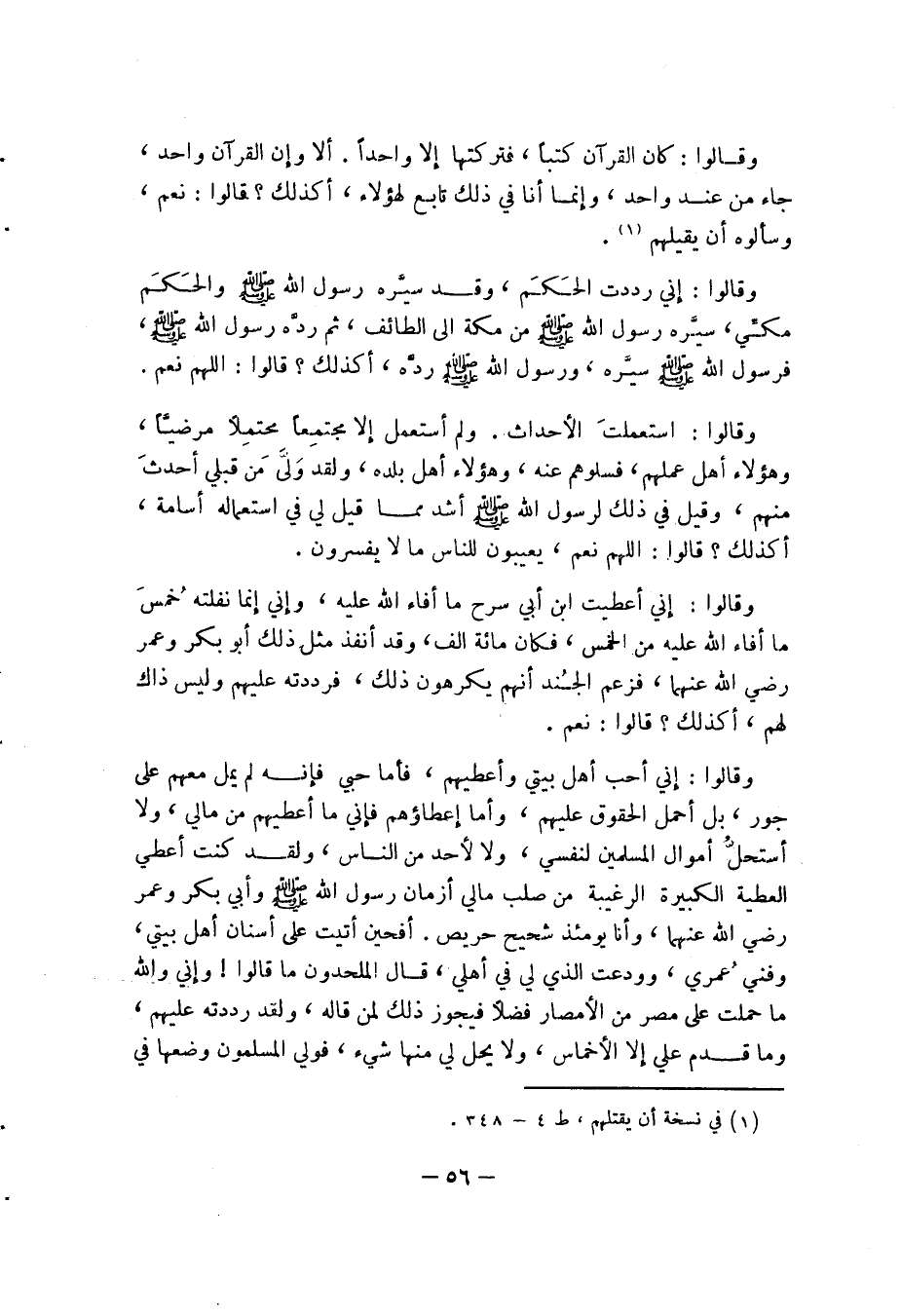 وقالوا: إني رددت الحكم وقد سيره رسول الله صلى الله عليه وسلم والحكم مكي سيره رسول الله صلى الله عليه وسلم من مكة إلى الطائف ثم رده رسول الله صلى الله عليه وسلم فرسول الله صلى الله عليه وسلم سيره ورسول الله صلى الله عليه وسلم رده أكذلك؟ قالوا: اللهم نعم.