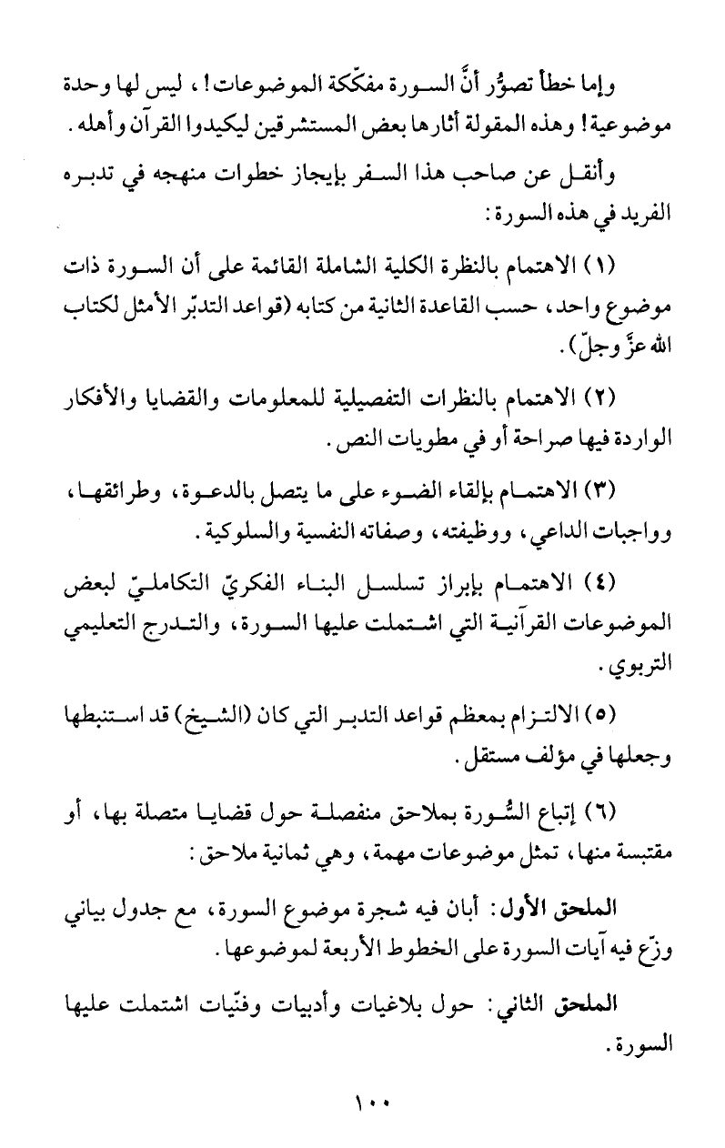 (6) إتباع السُّورة بملاحق منفصلة حول قضايا متصلة بها، أ و