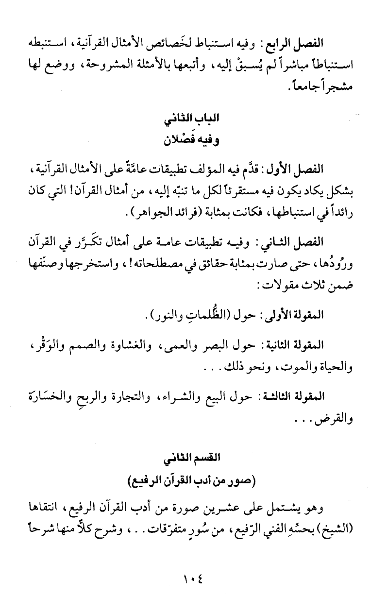 الفصل الأول: قدَّم فيه المؤلف تطبيقات عامَةً على ا لأمثال القرآنية،