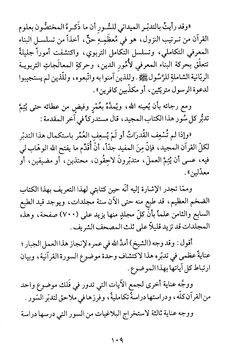 تدبُّر كل سُور هذا الكتاب المجيد، قال مستدركأ في اَخر المقدمة:
