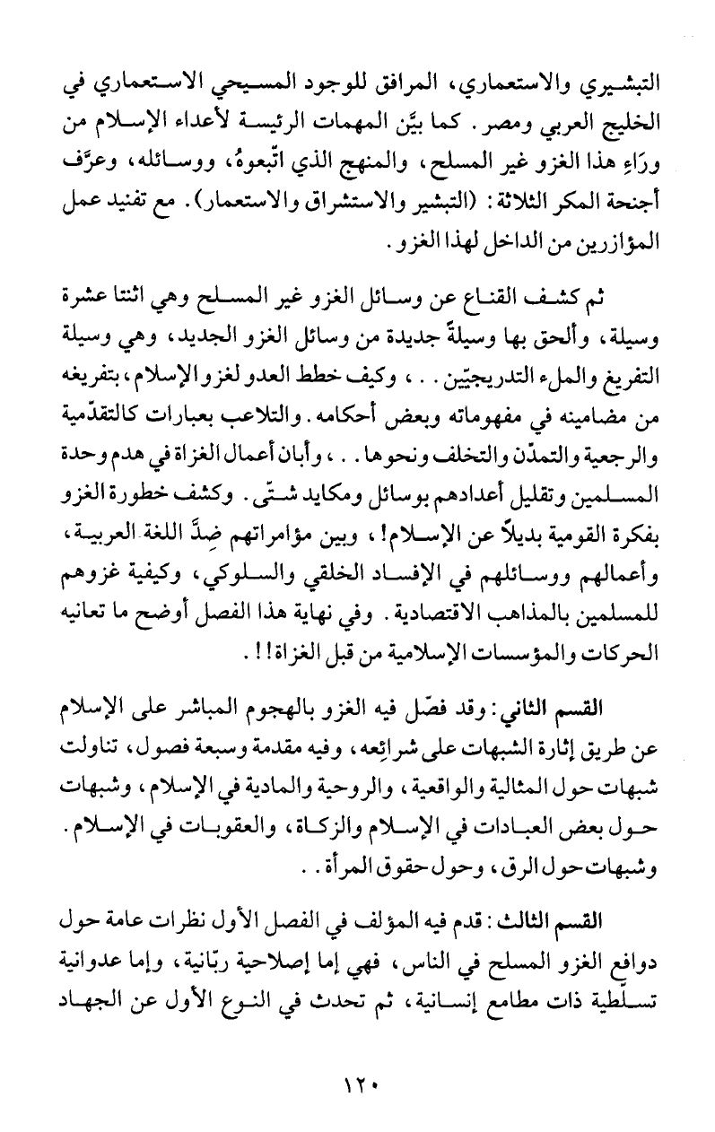 الفسم الثاني: وقد فصّل فيه الغزو بالهجوم المباشر على الإسلام