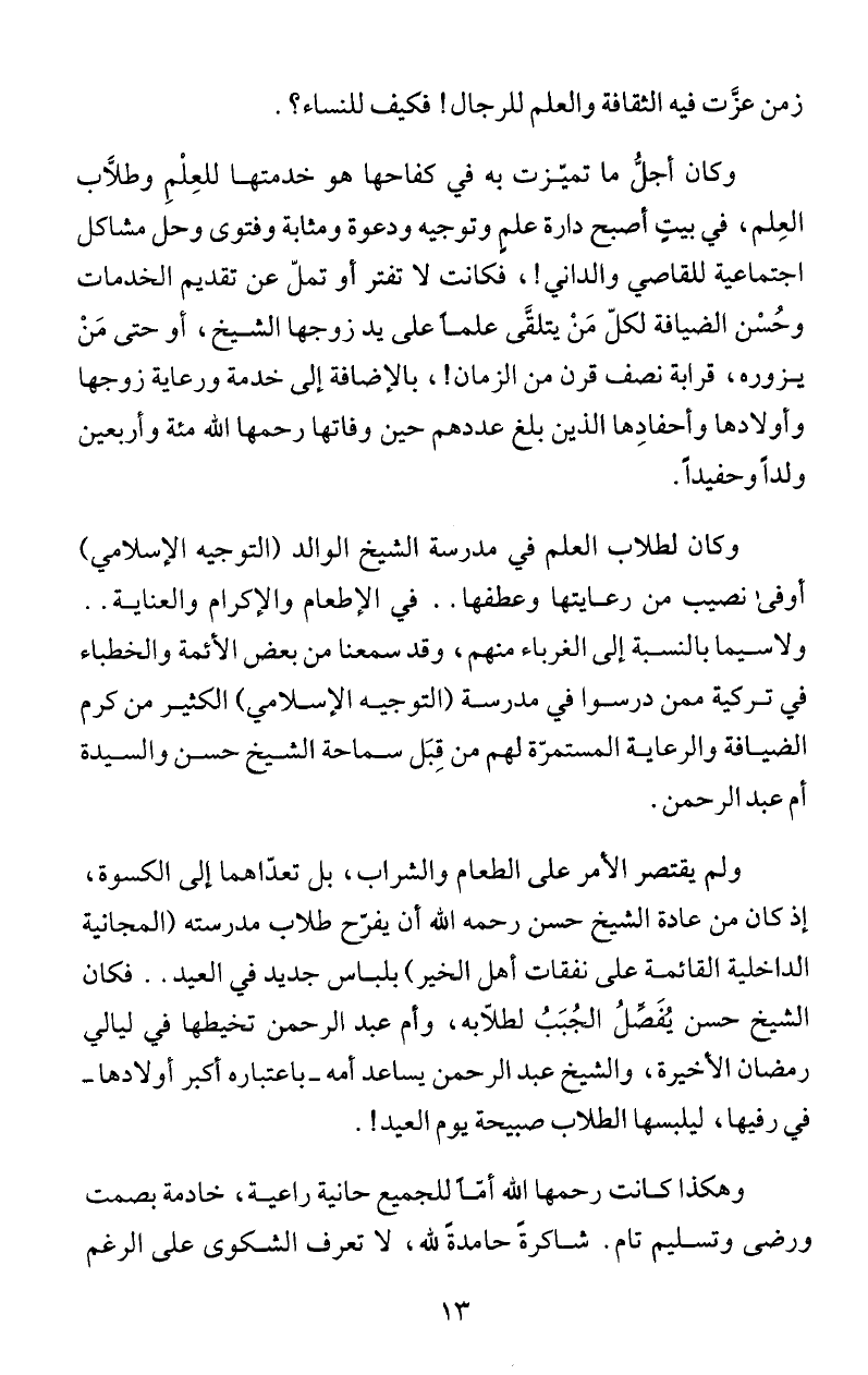 وحُسْن الضيافة لكلّ مَنْ يتلقَى علمأعلى يد زوجها الشيخ، أو حتى مَنْ