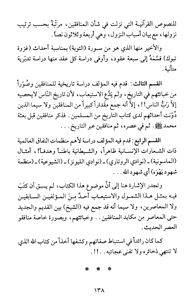 القسم الثالث: قدم فيه المؤلف دراسة تاريخية للمنافقين وصُوَرا