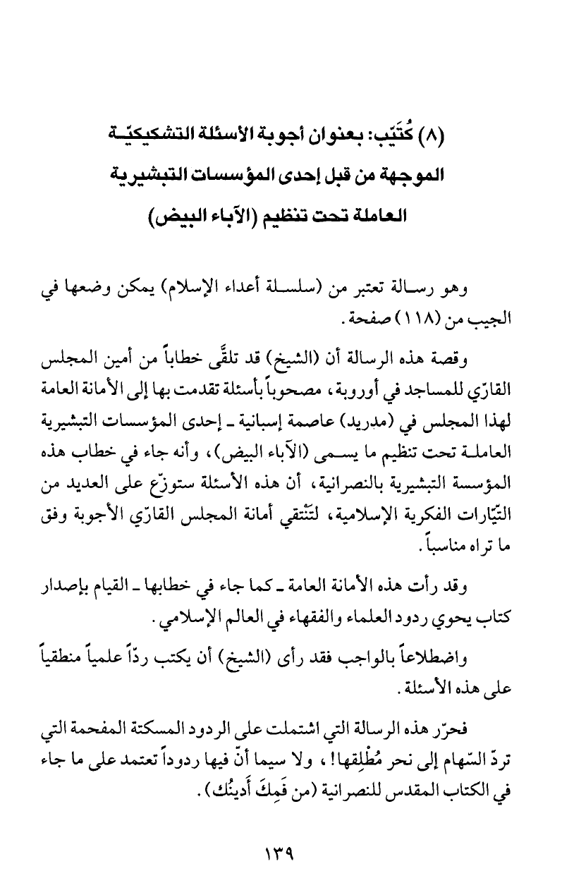 (8 (كُتَيّب: بعنوان أجوبة الأسئلة التشكيكيّة