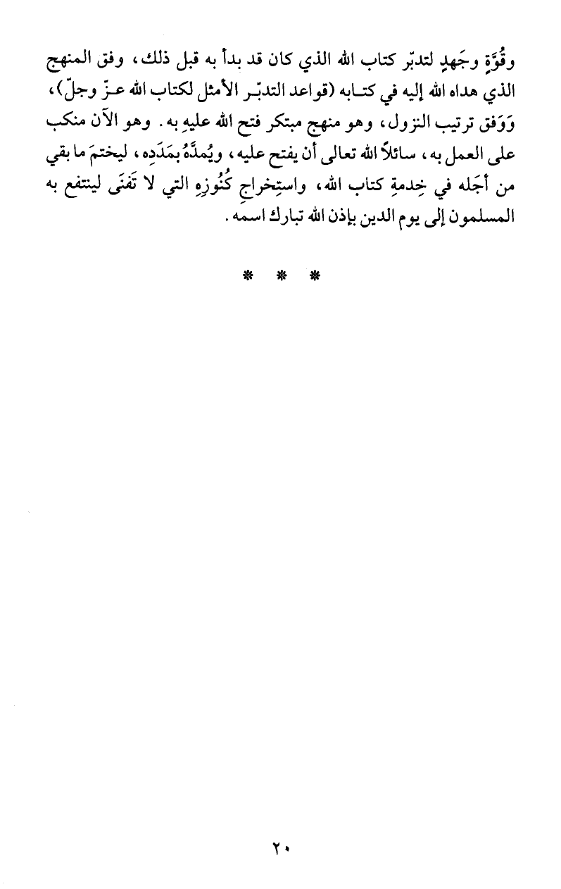 وقُوَّةٍ وجَهدٍ لتدبّر كتاب الله الذي كان قد بدا به قبل ذلك، وفق المنهج