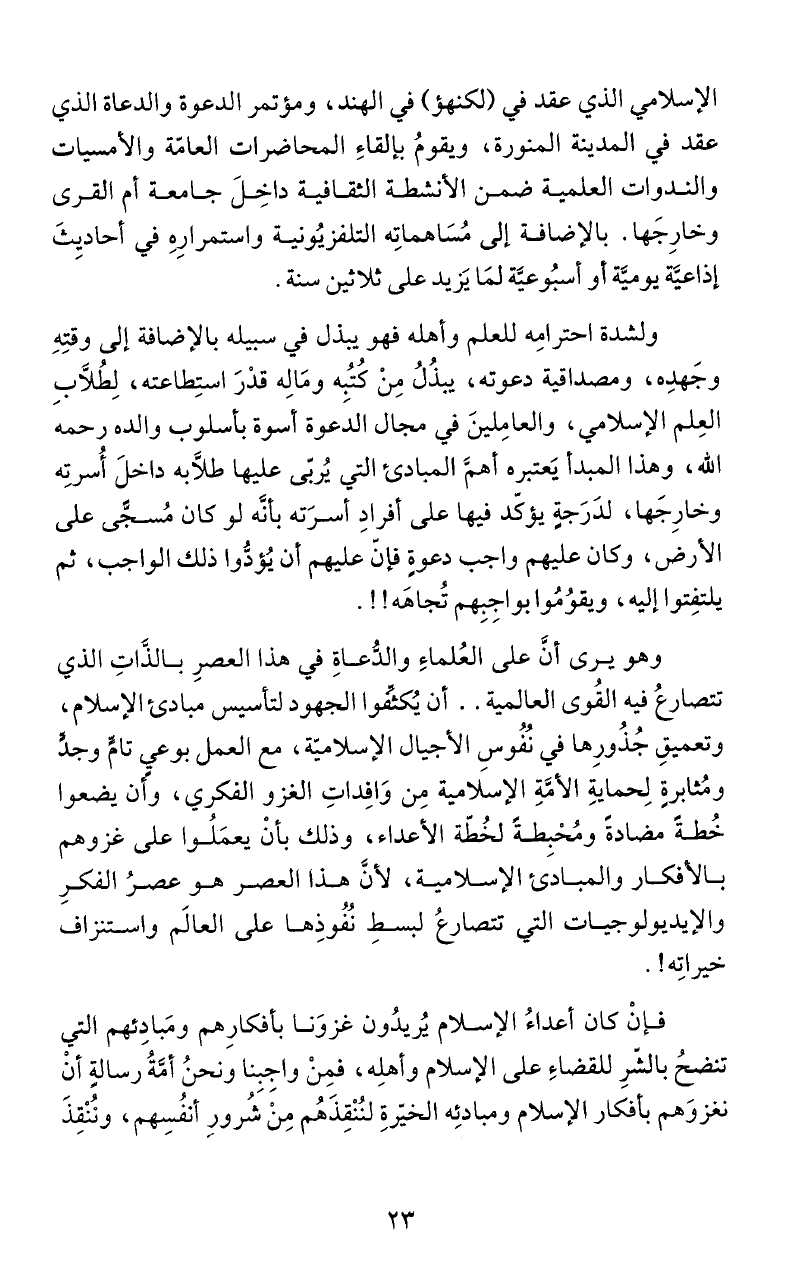 تتصارعُ فيه القُوى العالمية. . ان يُكثثوا الجهود لتأسيس مبادئ الإسلام،