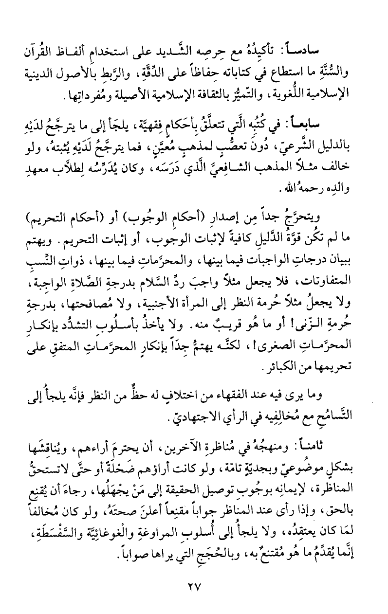 والشُئةِ ما استطاع في كتاباته حِفاظاً على الدفَةِ، والرَّبطِ بالأصول الدينية