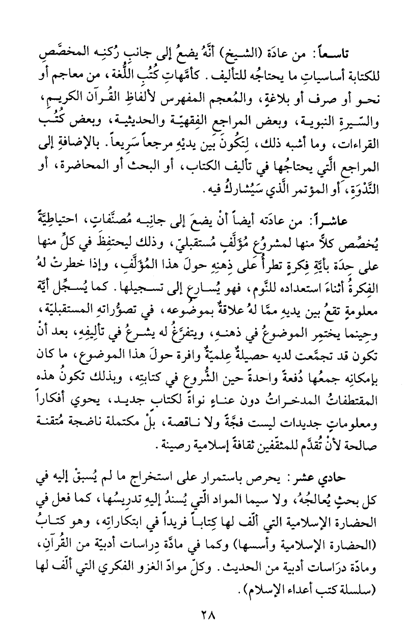 وحِينما يختمِر الموضوعُ في ذهنهِ، ويتفزَغُ له يشرعُ في تألِيفِهِ، بعد أنْ